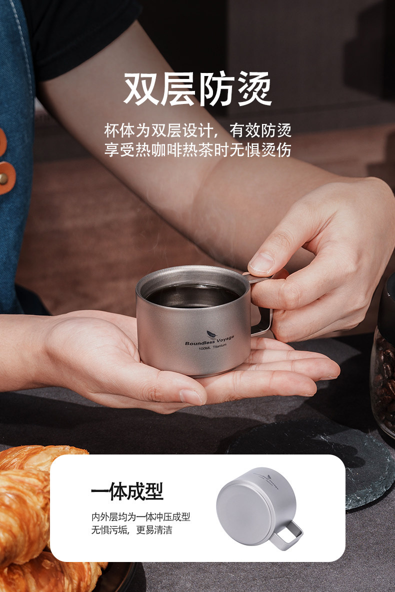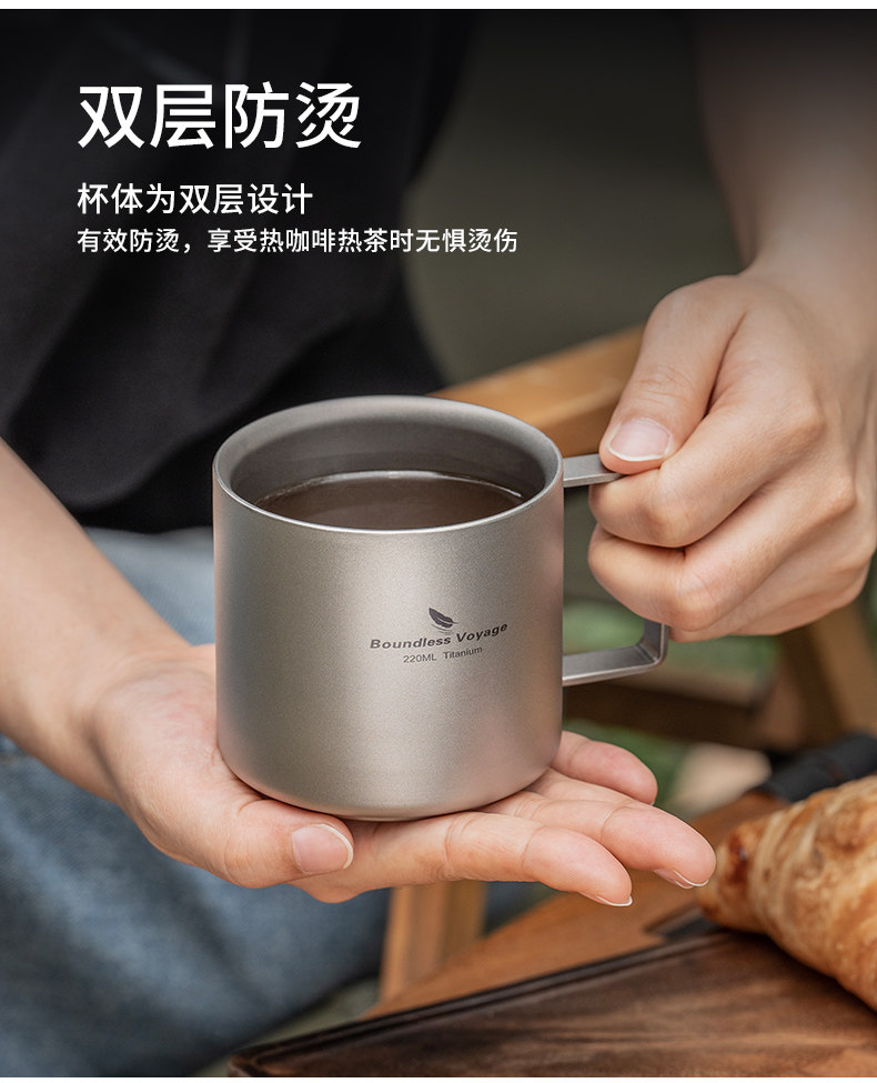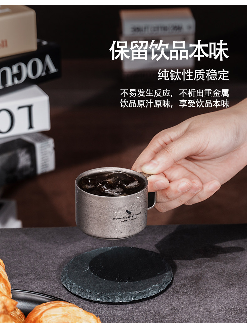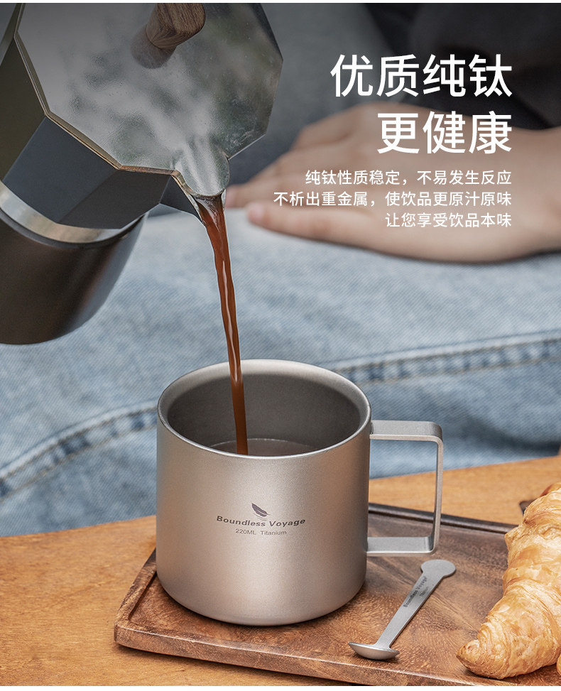 必唯純鈦咖啡杯雙層戶外隨行杯食品級可攜式平底鈦杯高顔值外帶茶杯