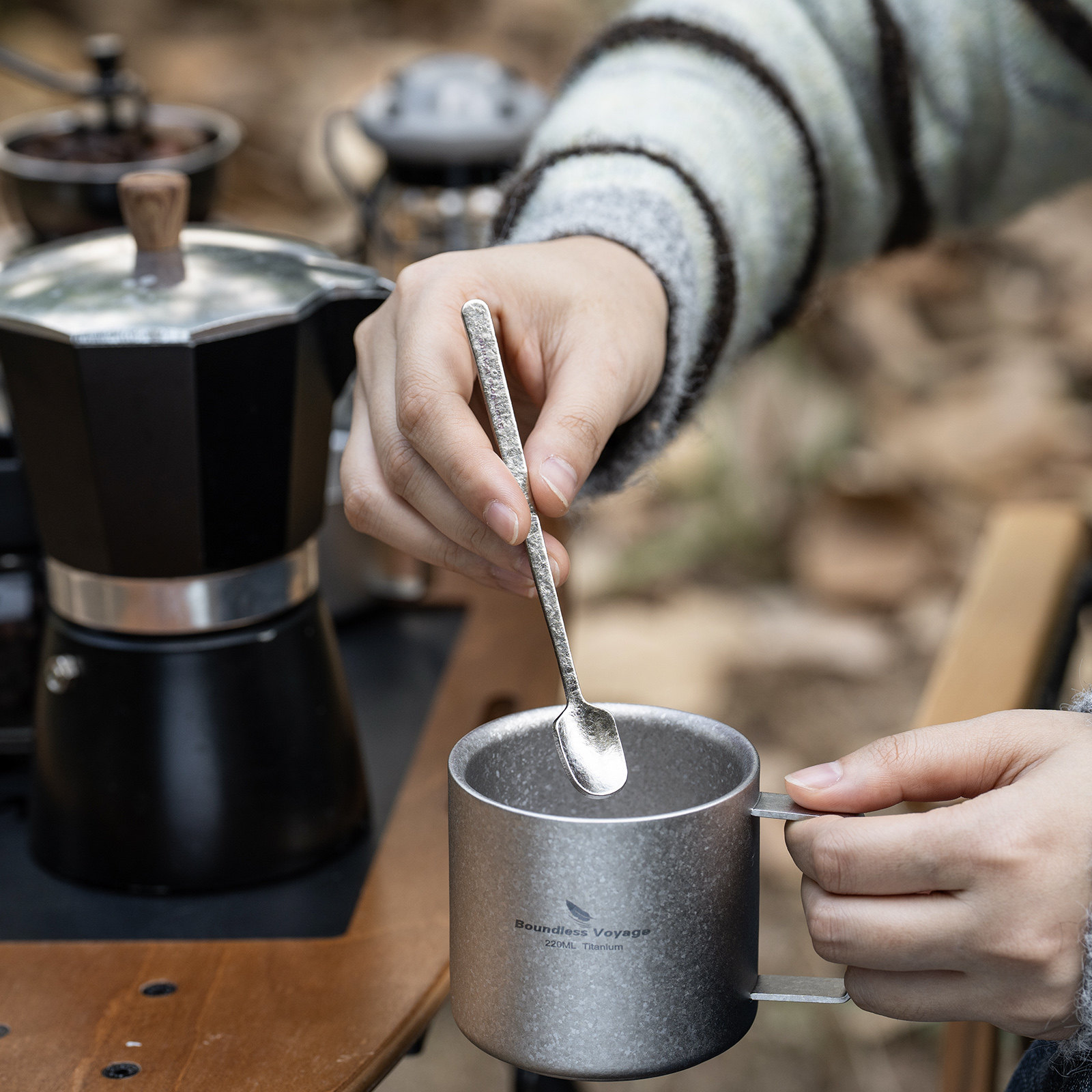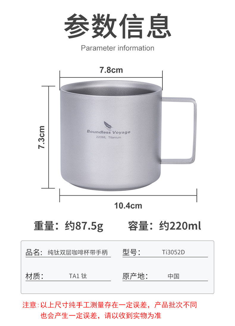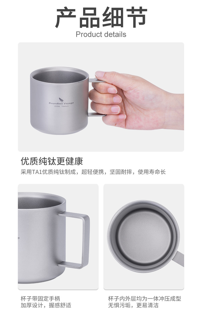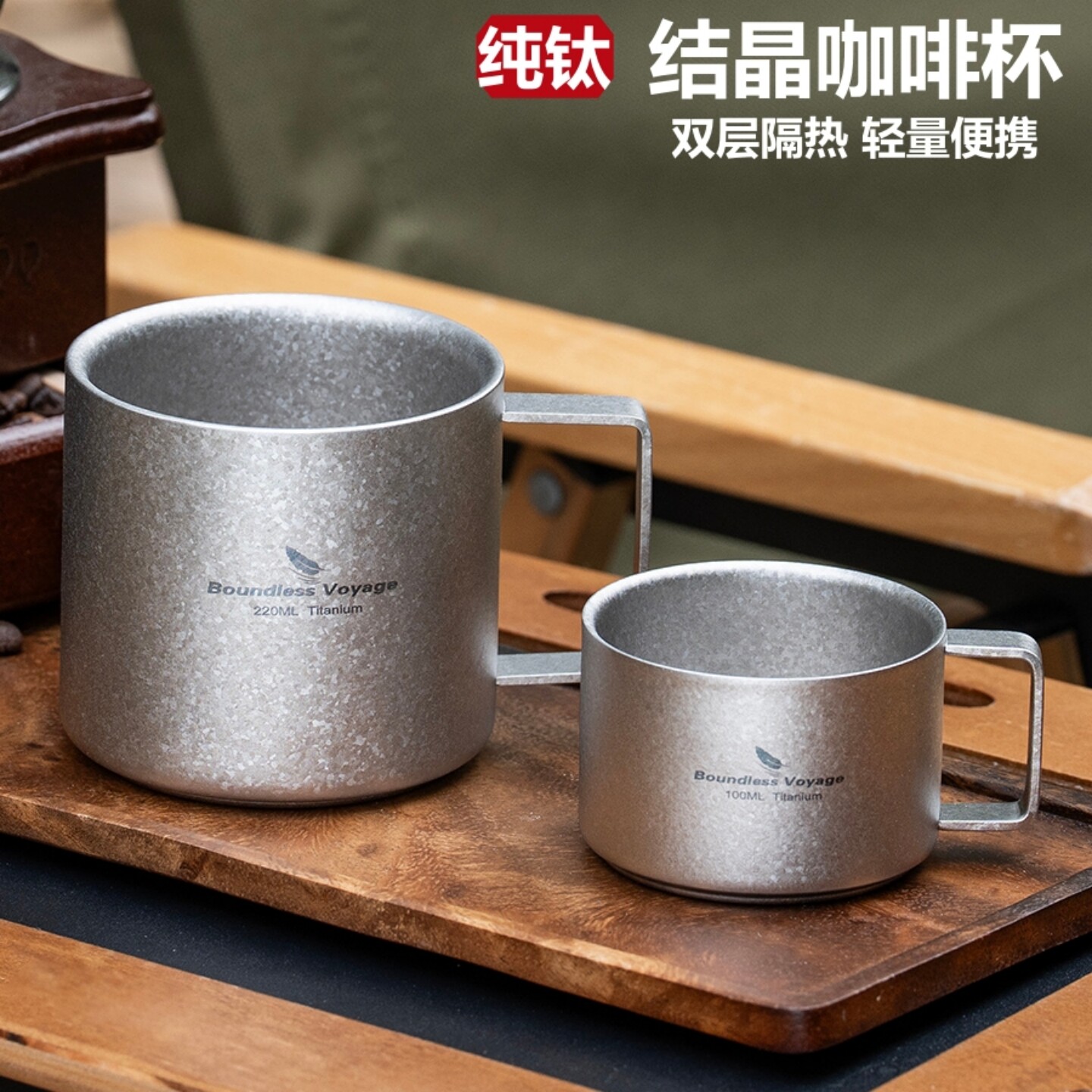 必唯純鈦咖啡杯雙層戶外隨行杯食品級可攜式平底鈦杯高顔值外帶茶杯