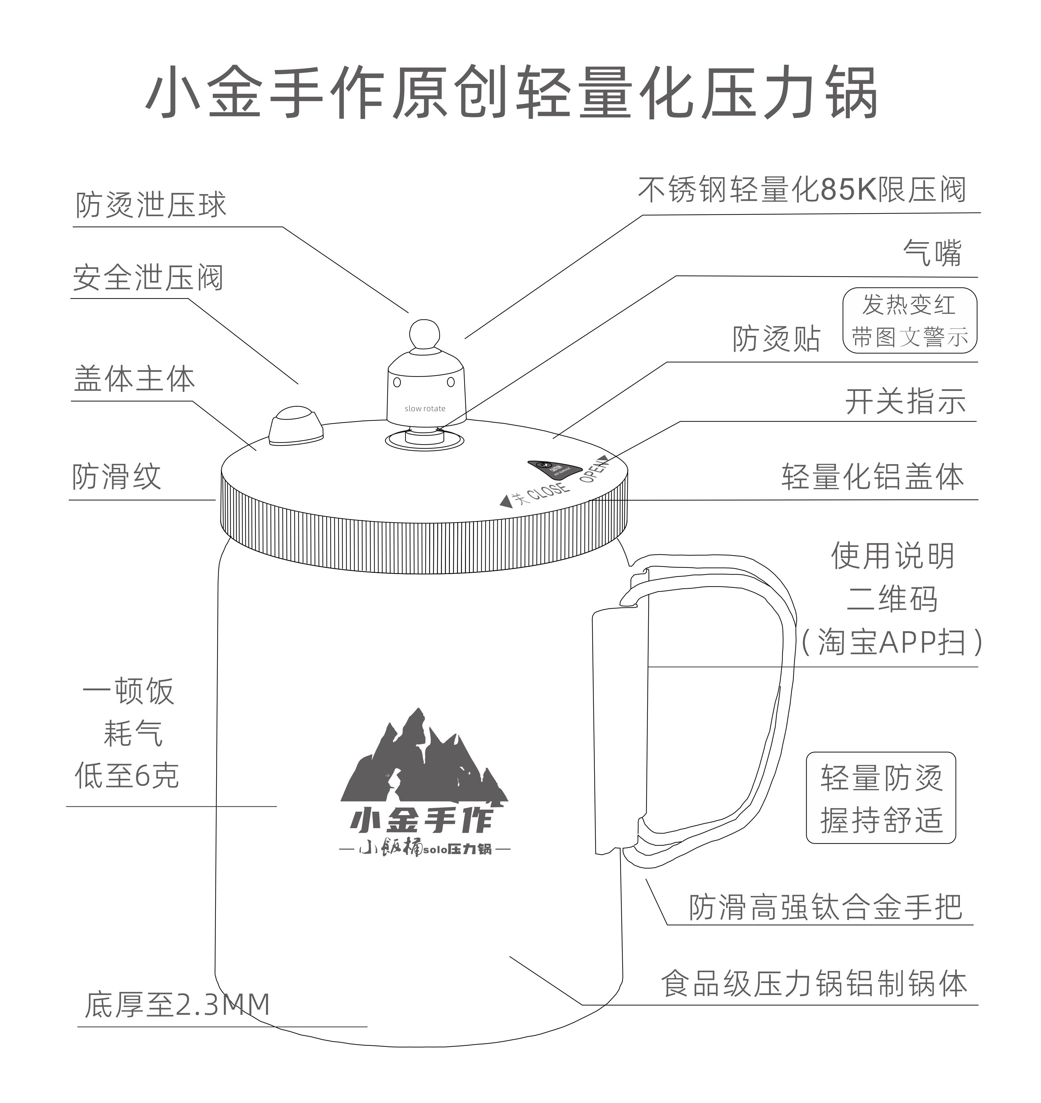 “小飯桶”solo壓力鍋戶外輕量化迷你鋁製高壓鍋超輕小人氣高壓鍋