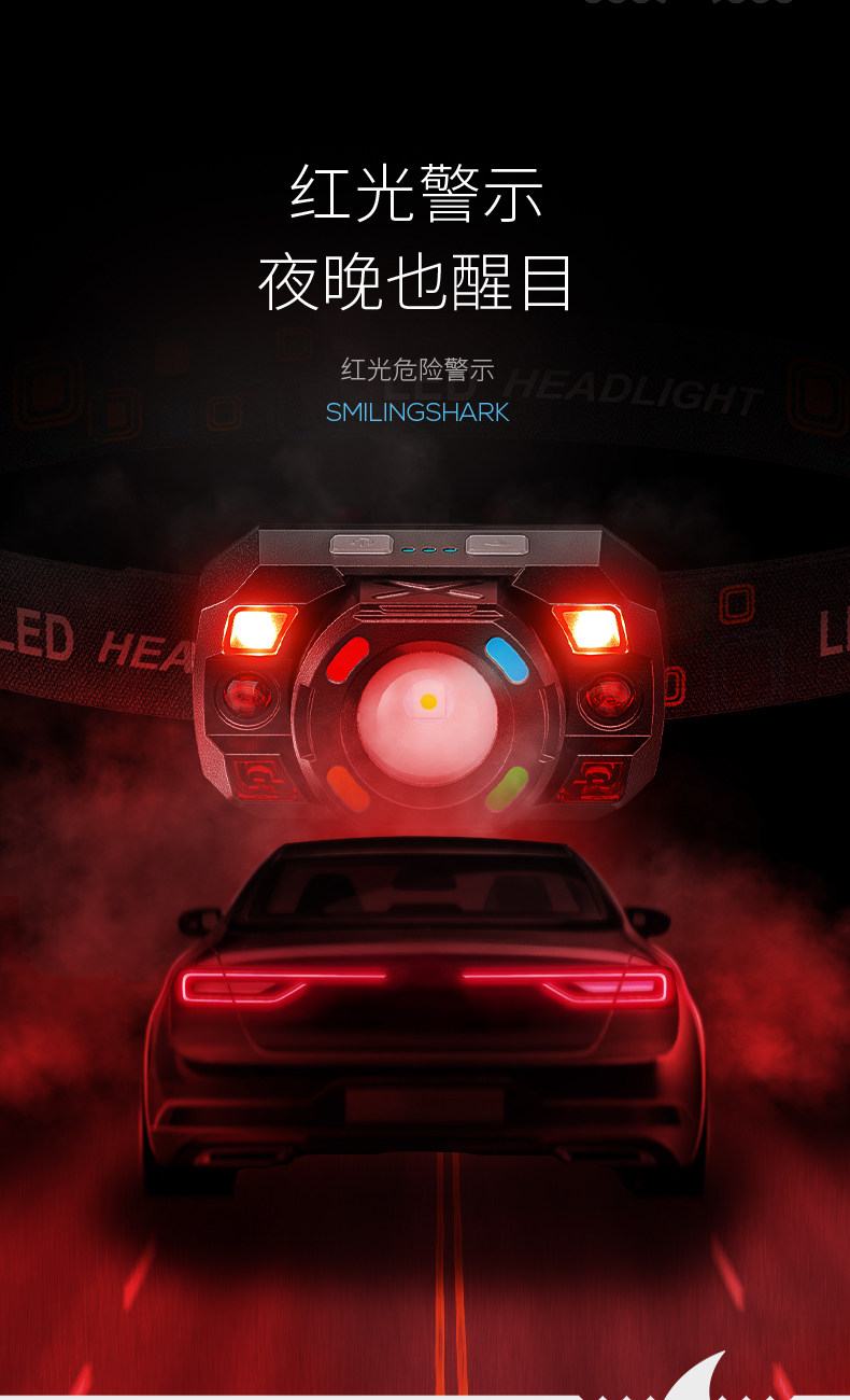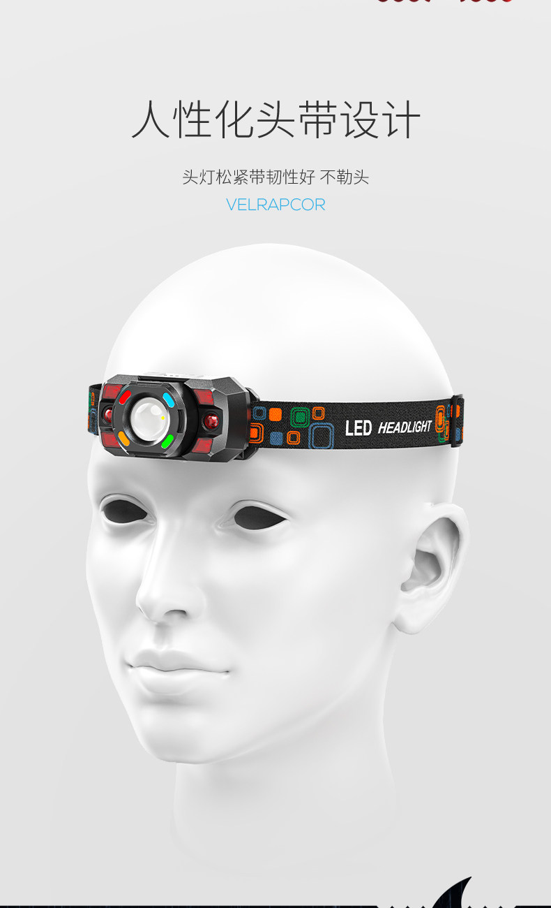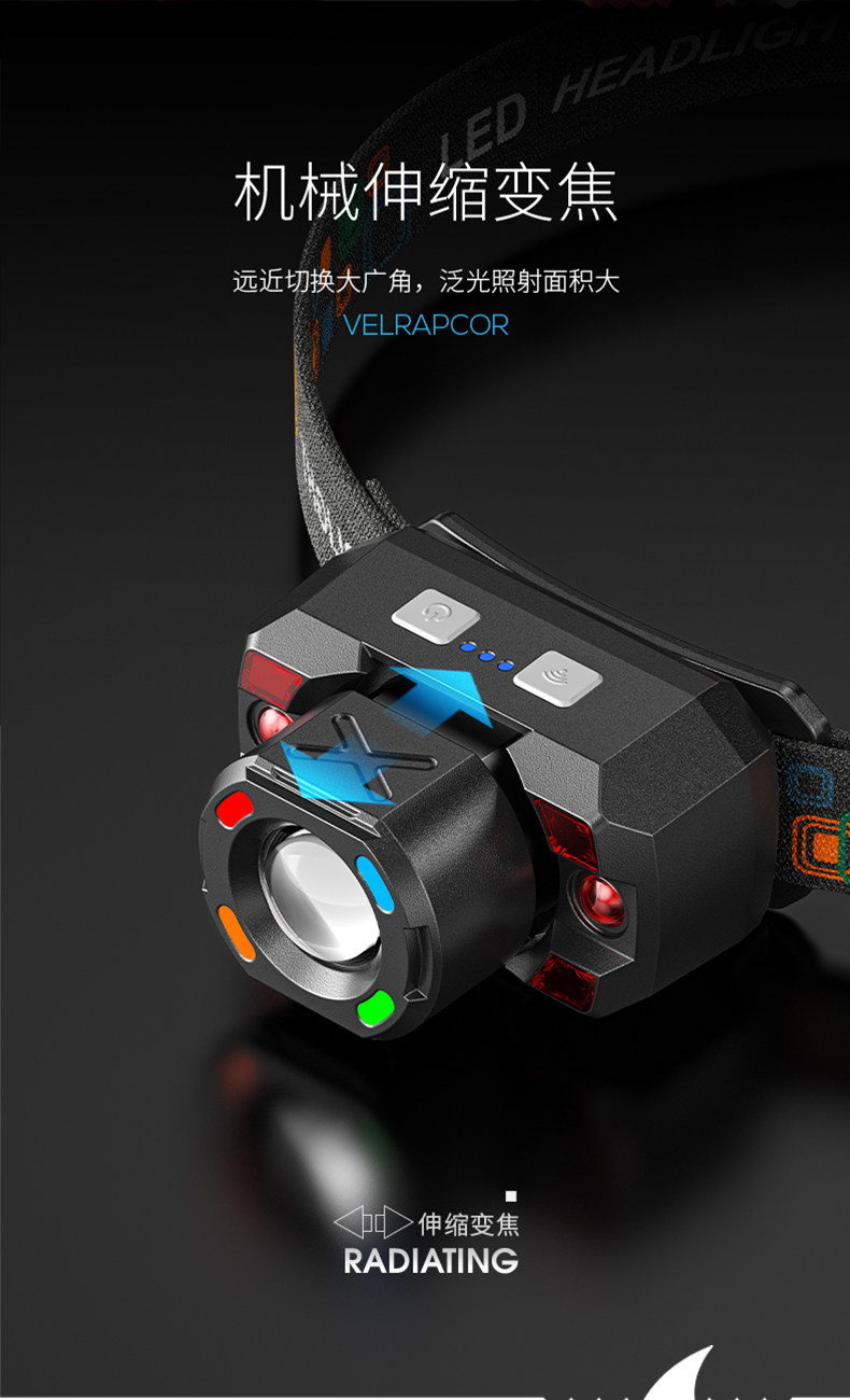 超長續航強光頭燈100小時夜釣魚專用感應變焦充電頭戴式紅光藍光