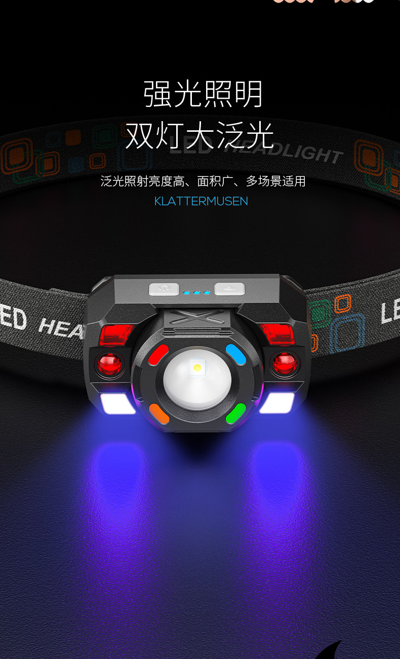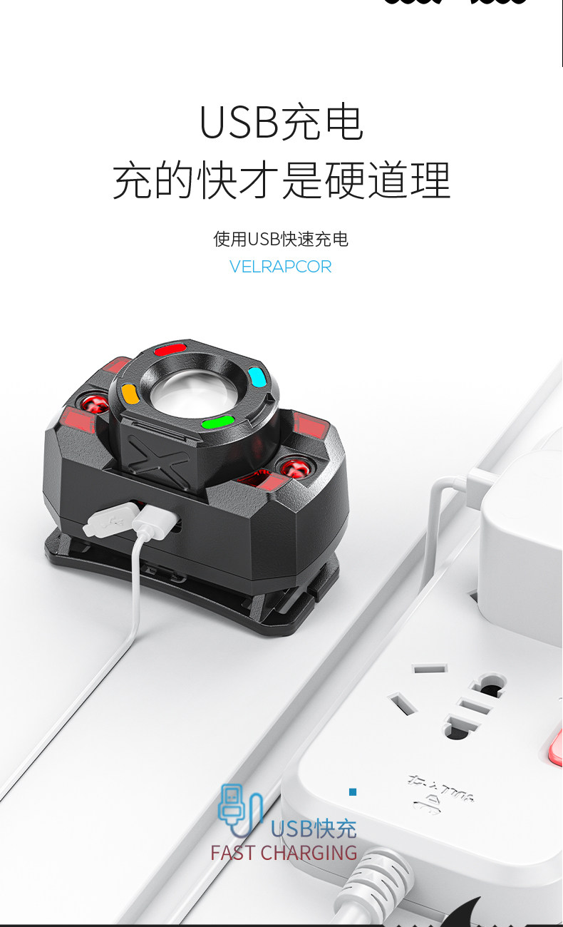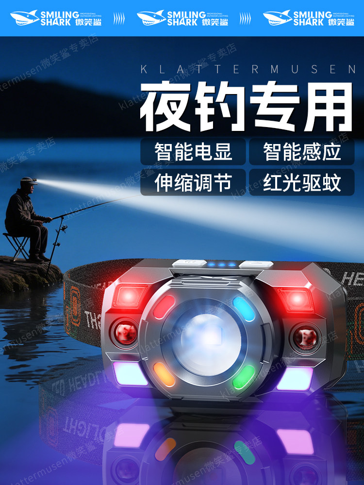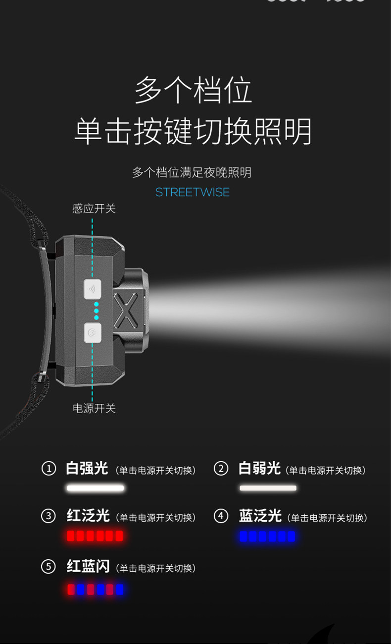 超長續航強光頭燈100小時夜釣魚專用感應變焦充電頭戴式紅光藍光