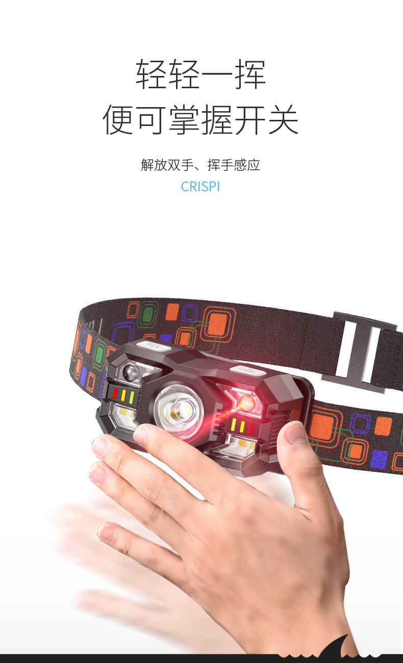登山頭燈戶外強光超亮可充電超輕感應頭戴式超長續航夜爬徒步裝備
