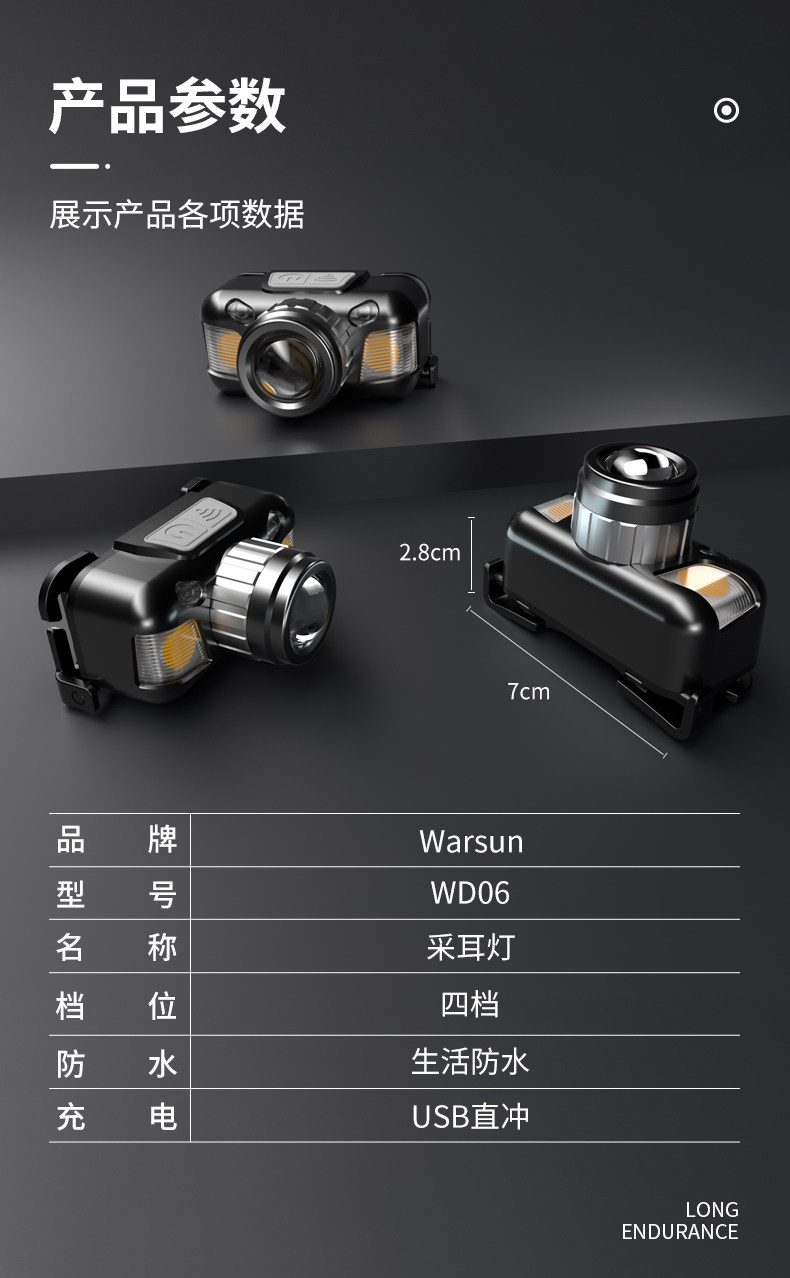 專業採耳頭燈聚光頭戴式充電醫用美容紋身專用感應掏耳朵探照燈