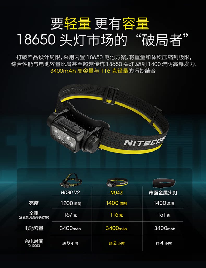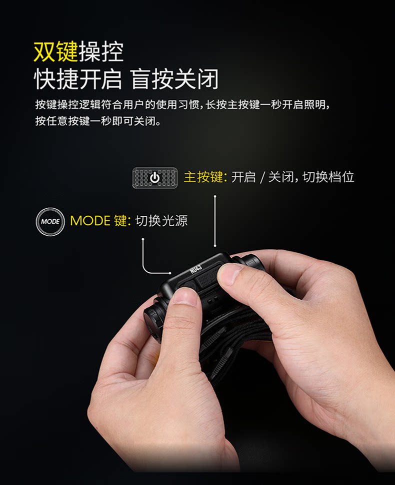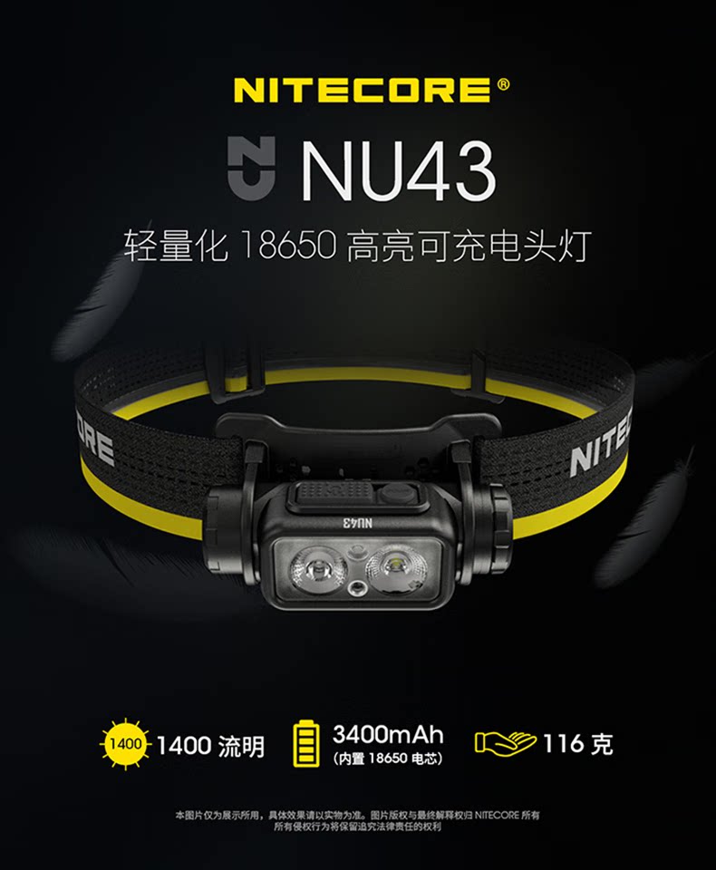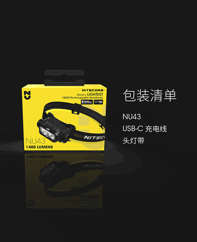 NITECORE奈特科爾NU43頭燈登山徒步雙光源照明釣魚夜跑燈輕量充電