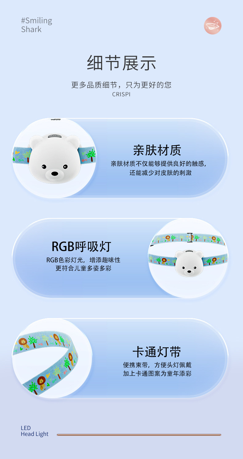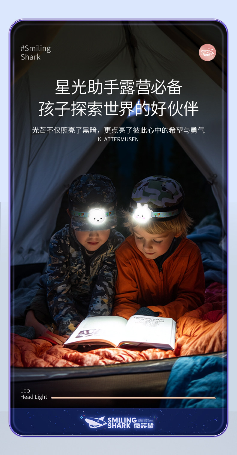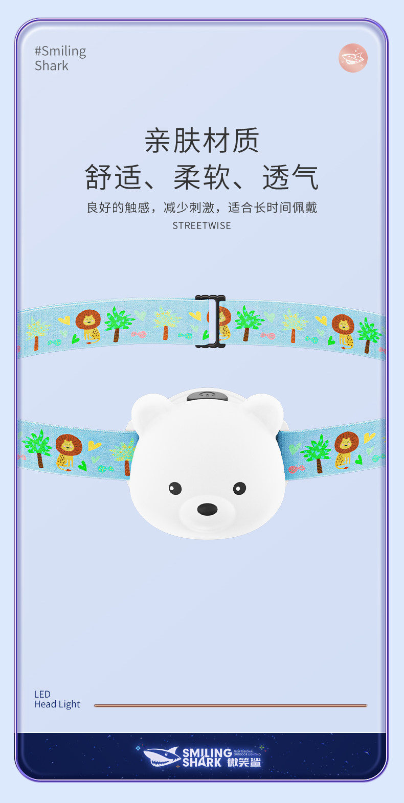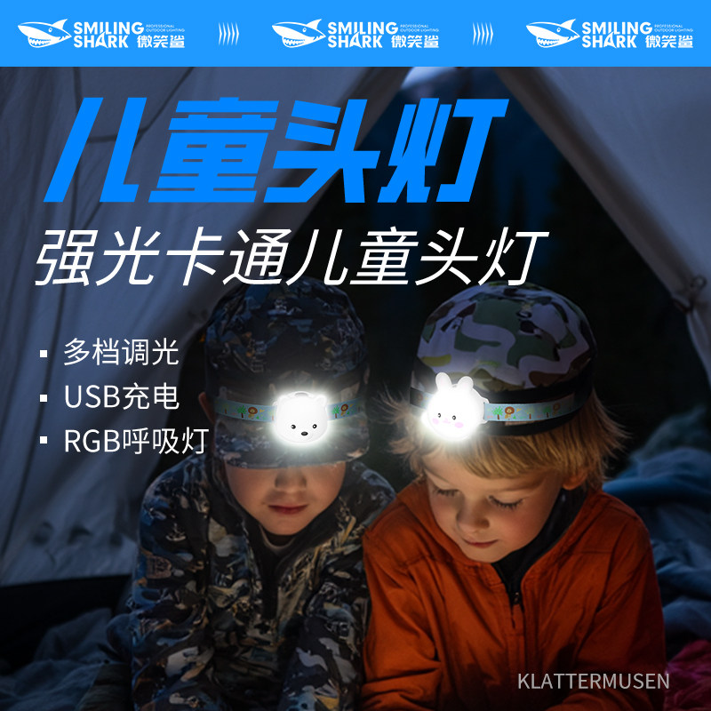 戶外卡通兒童頭燈柔光護眼充電頭戴式照明露營夏令營探索登山趕海
