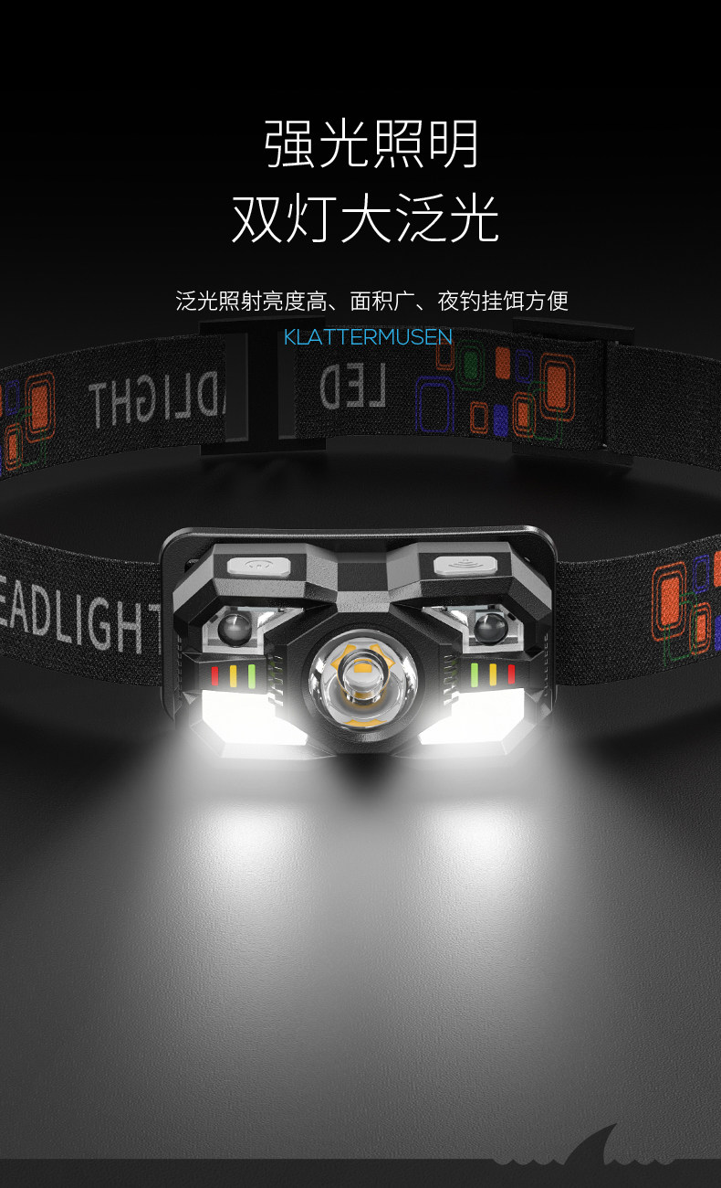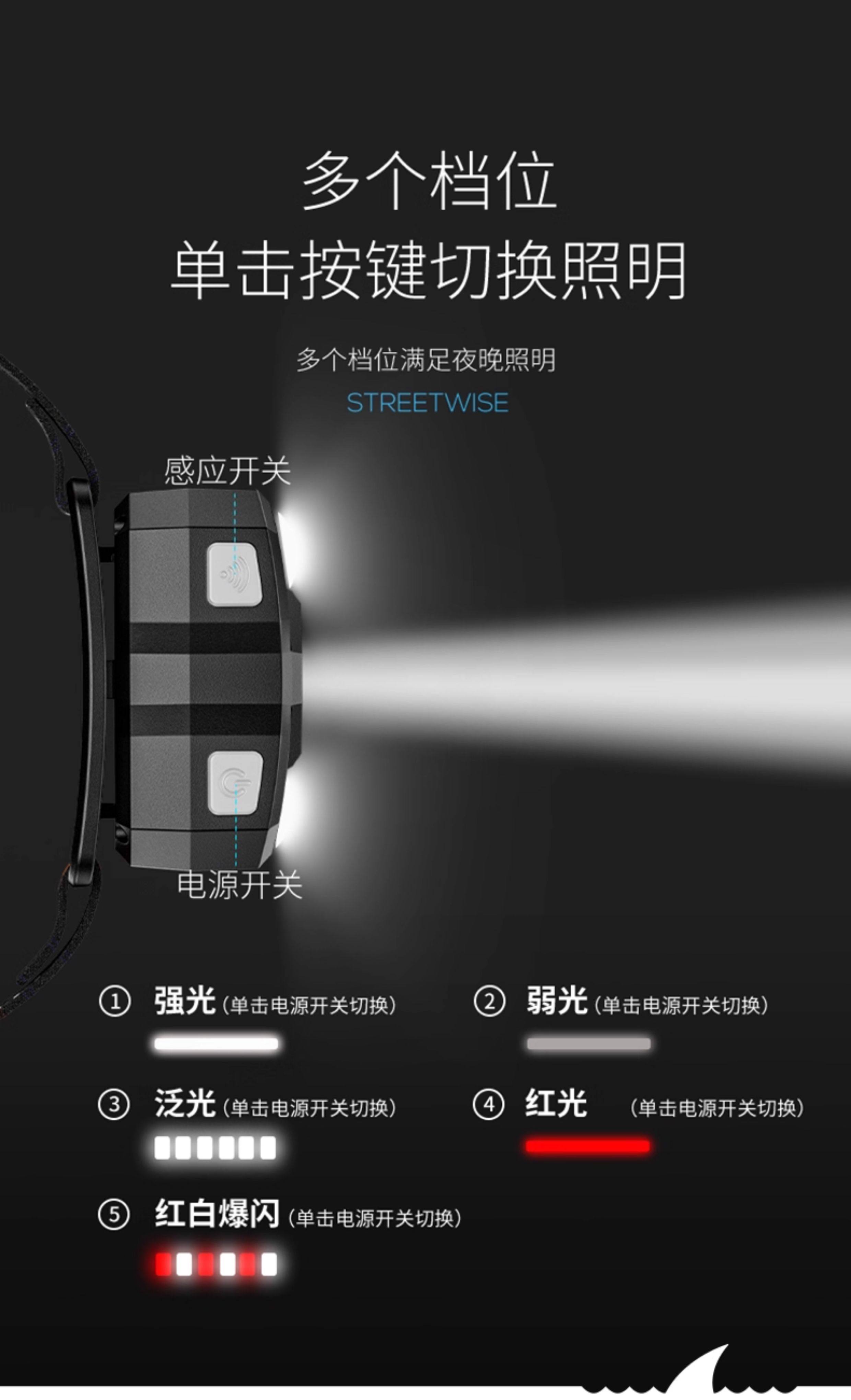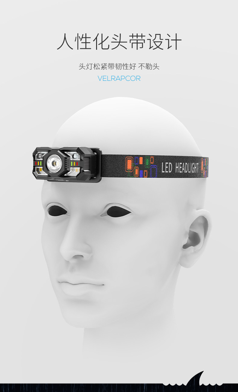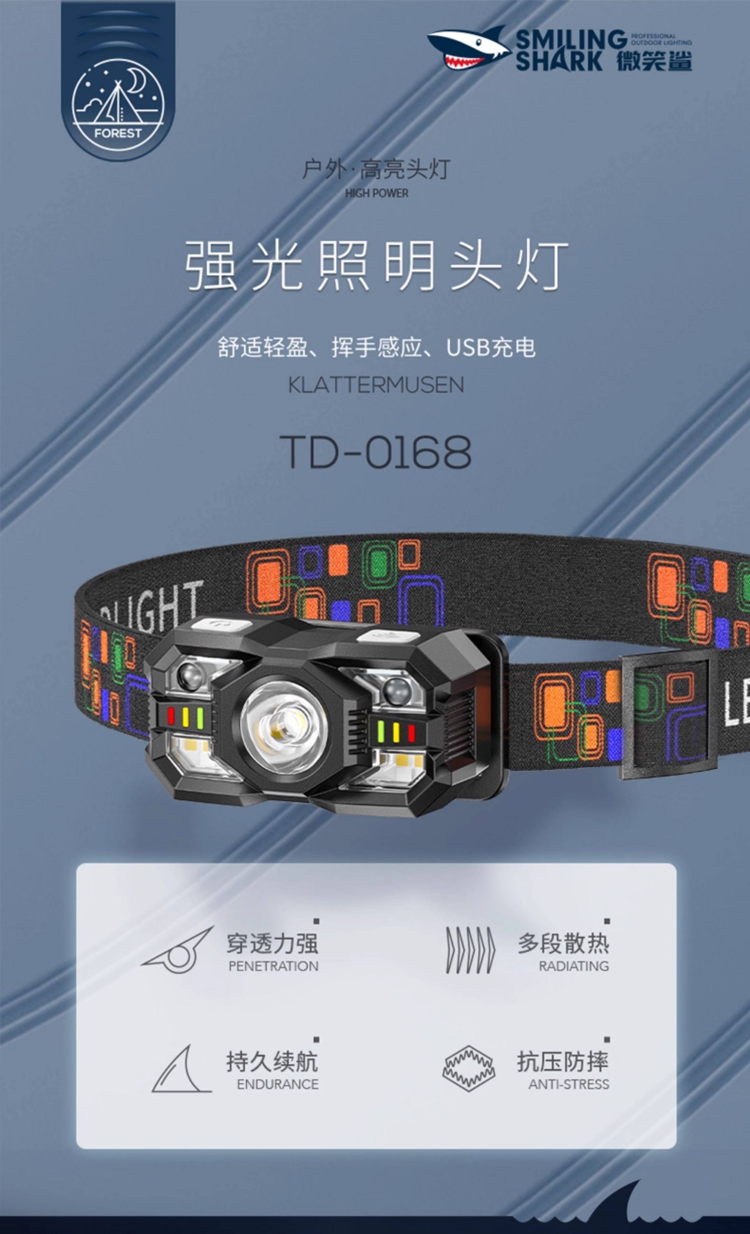 微笑鯊頭燈強光充電超亮頭戴式釣魚戶外超長續航智能感應LED夜釣