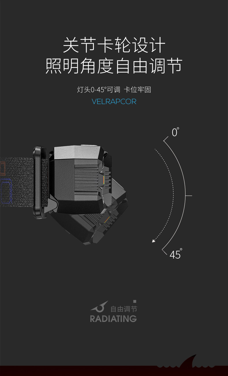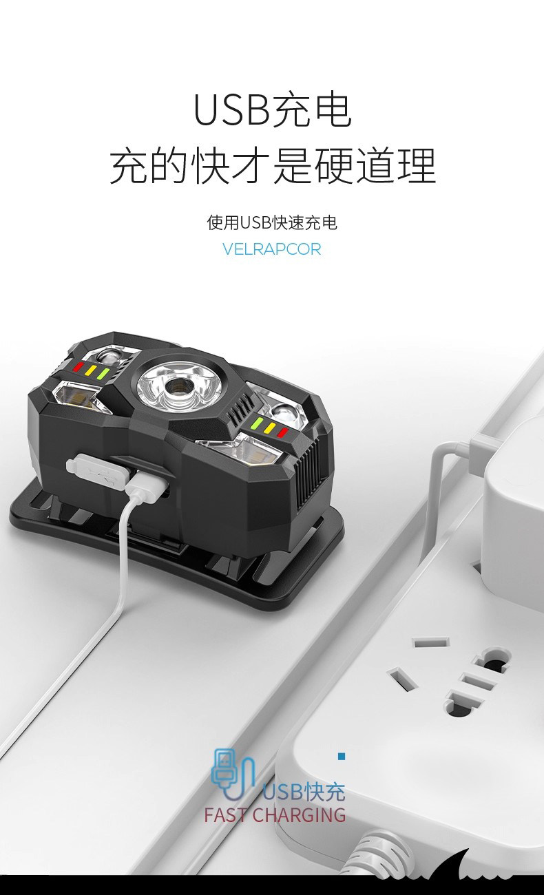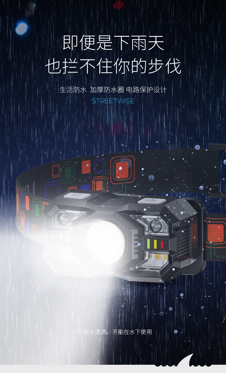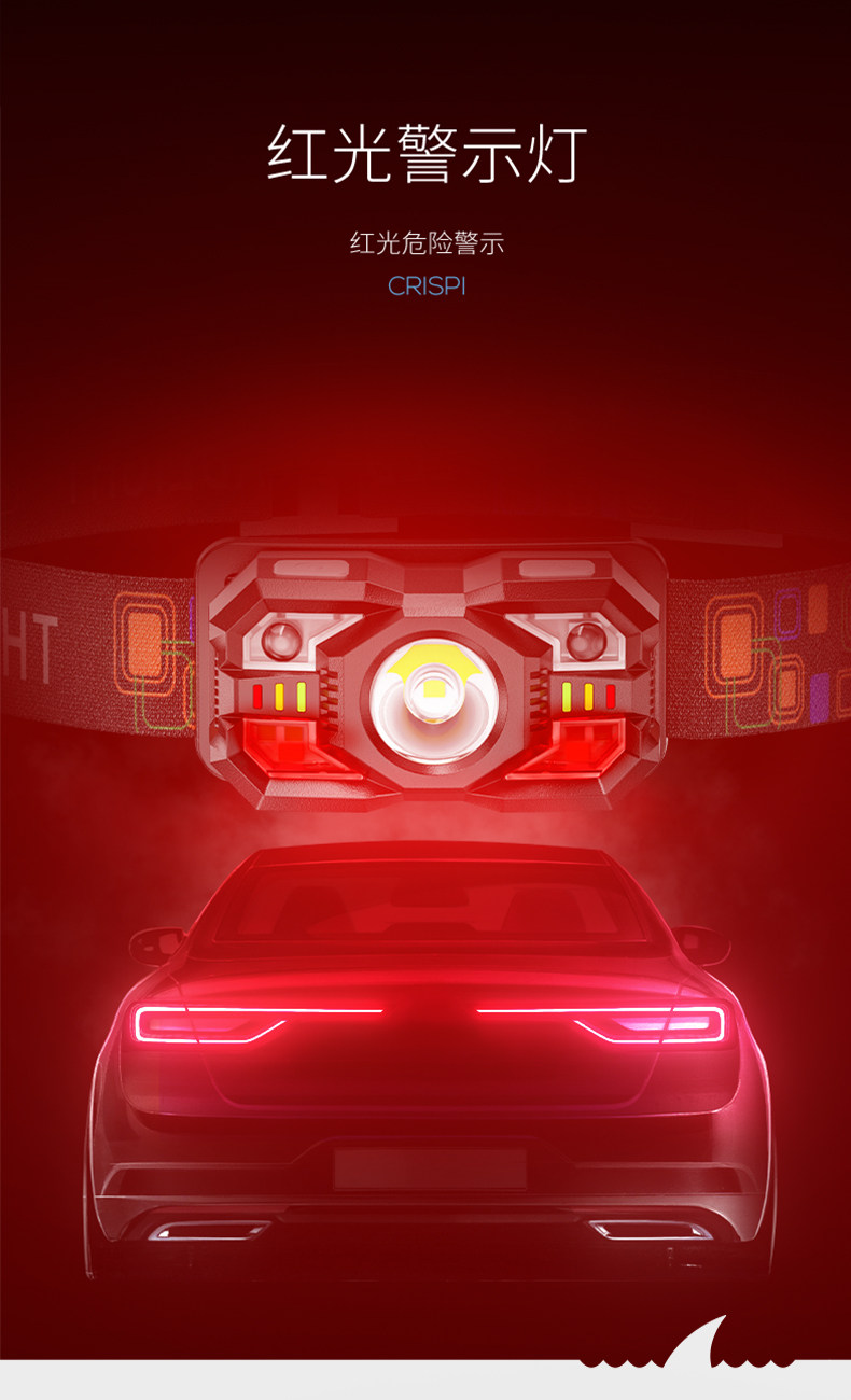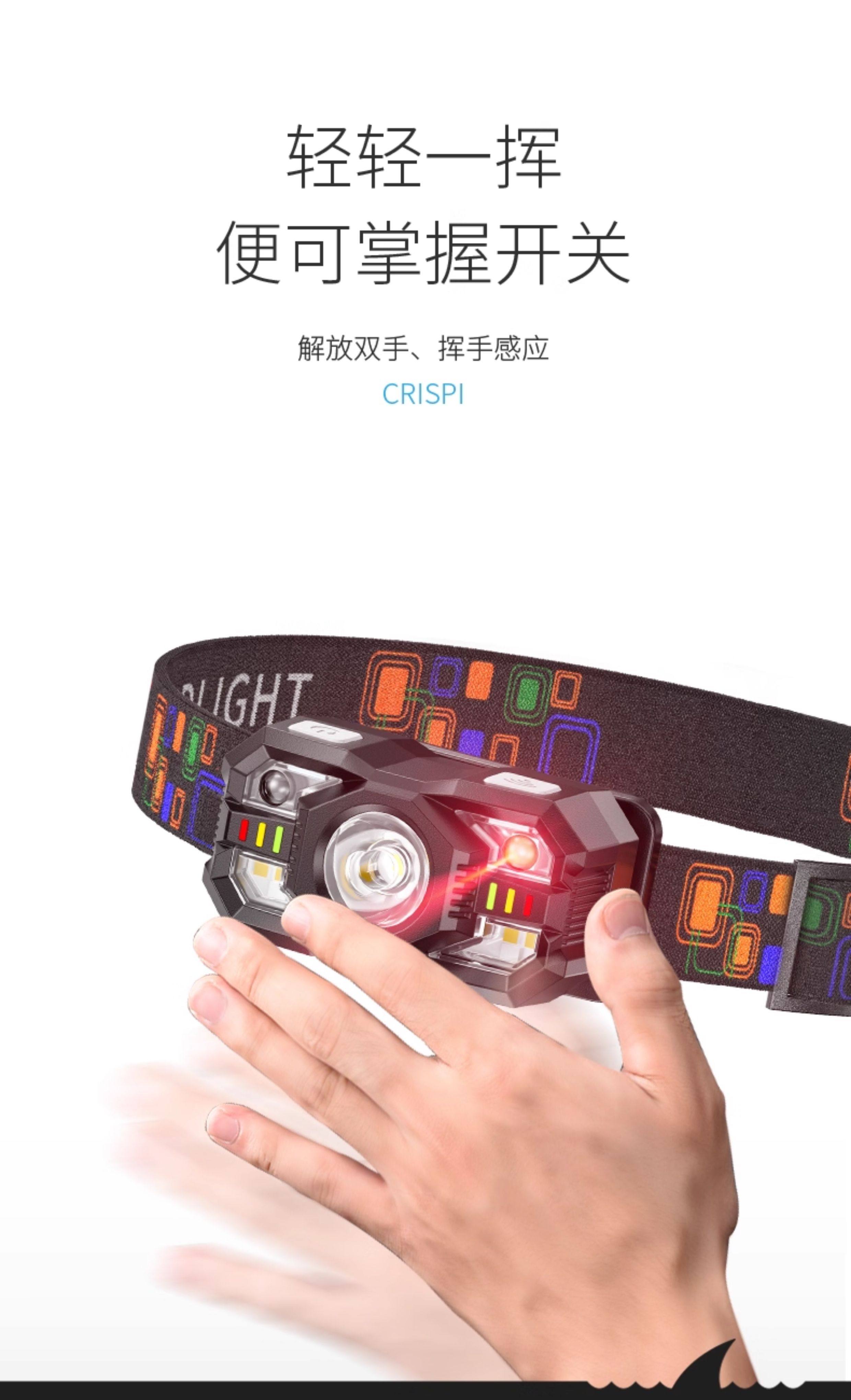 微笑鯊頭燈強光充電超亮頭戴式釣魚戶外超長續航智能感應LED夜釣
