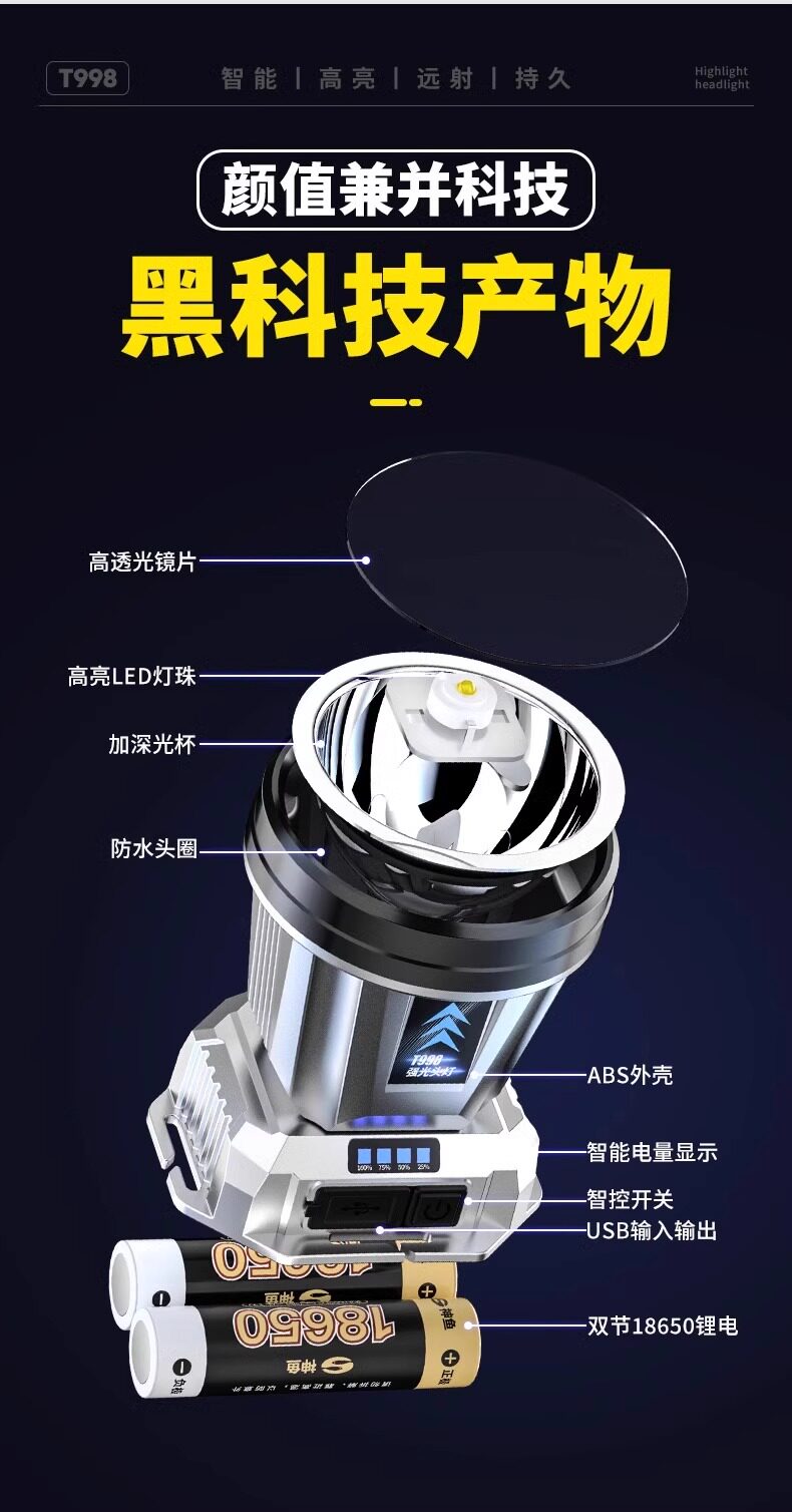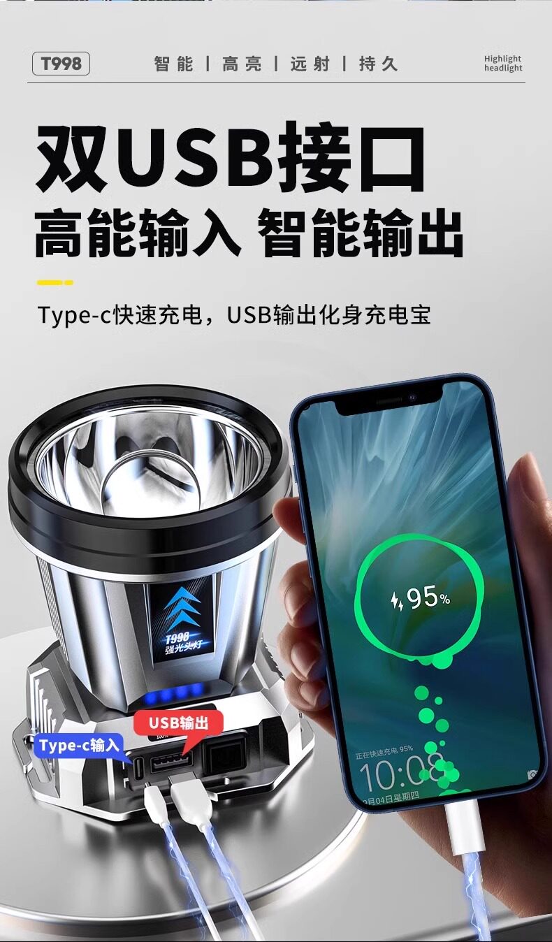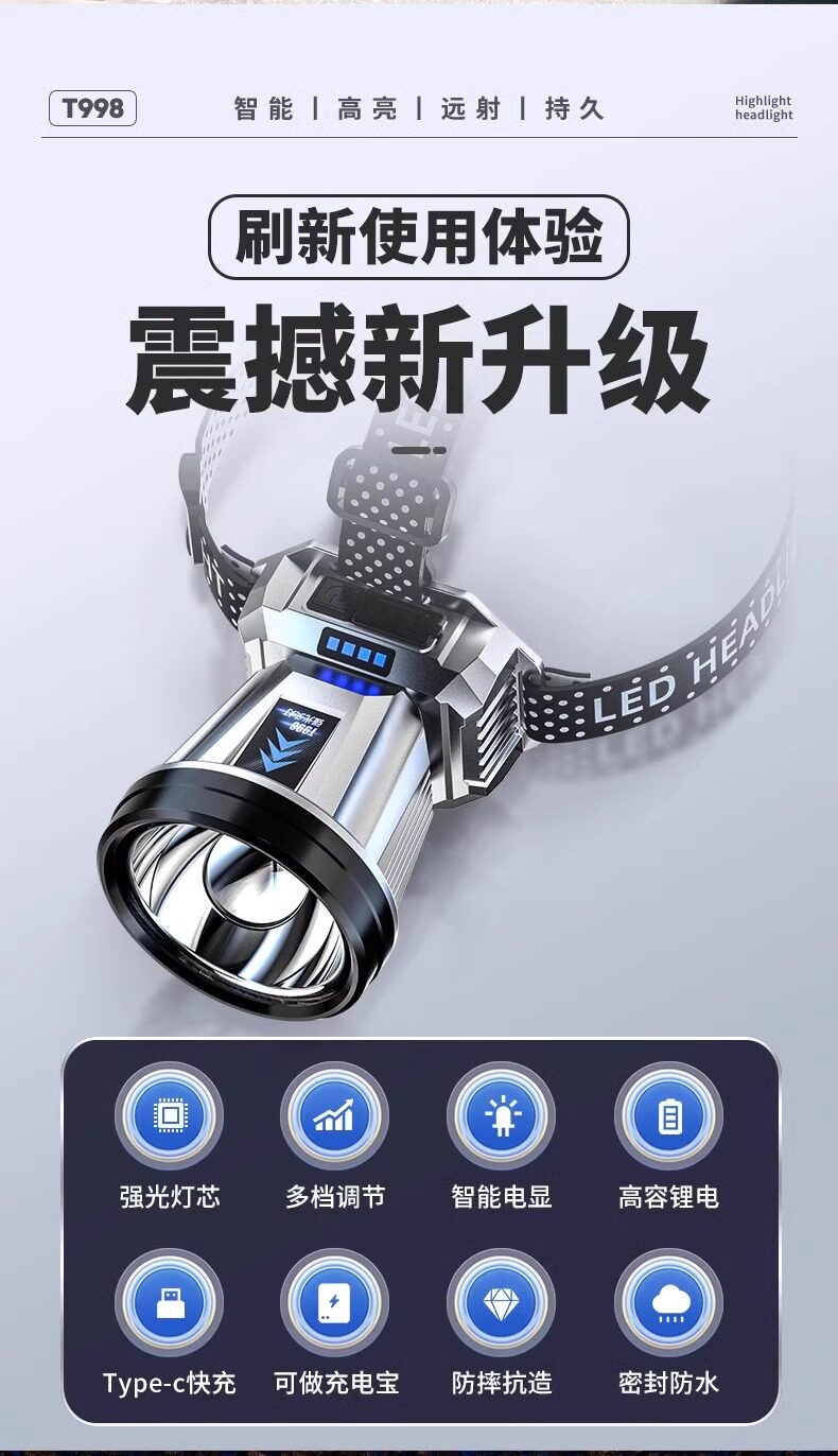 夜釣魚頭燈強光充電超亮頭戴式戶外超長續航手電筒礦燈輕感應專用