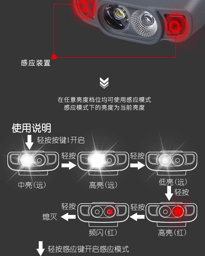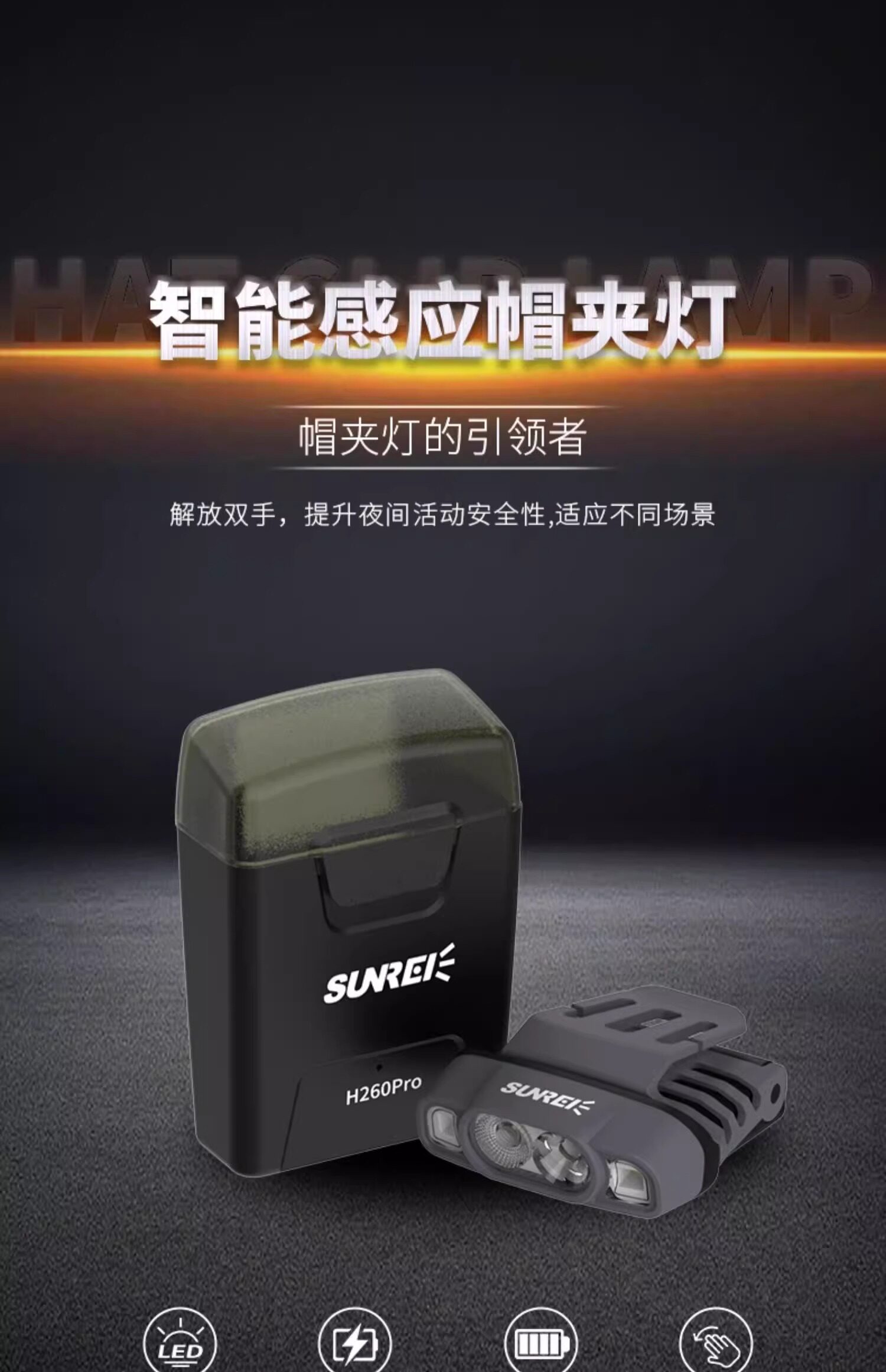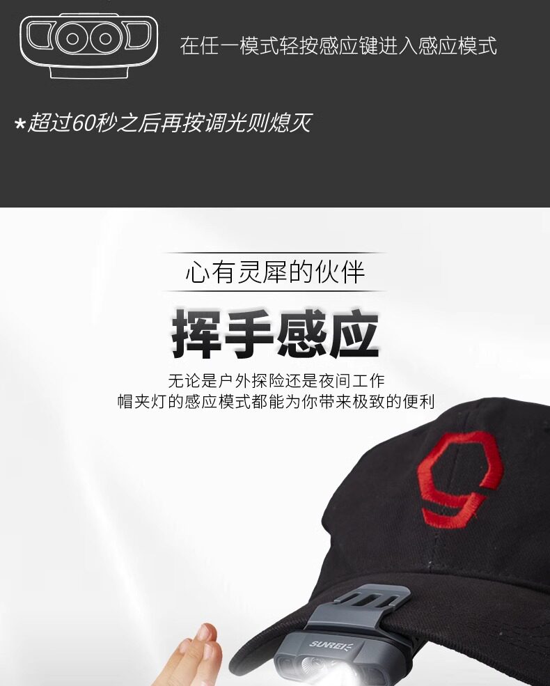 山力士H260Pro夜釣頭燈IPX5戶外露營徒步探索雙開關LED感應帽夾燈