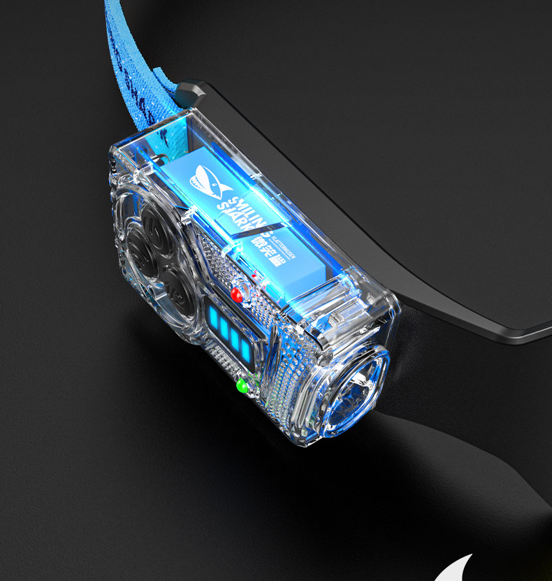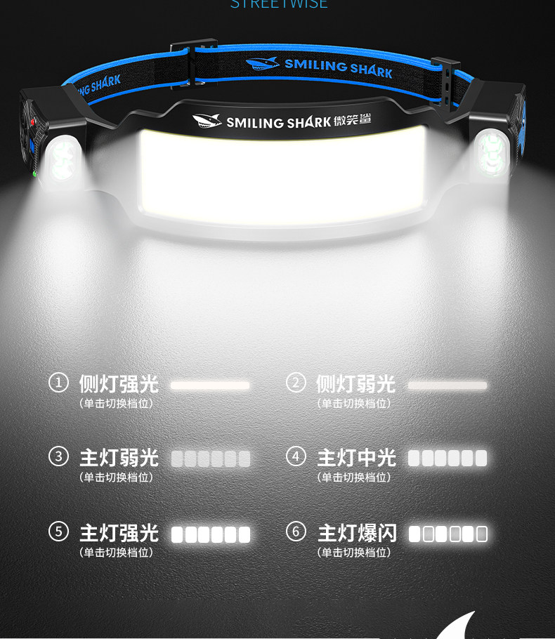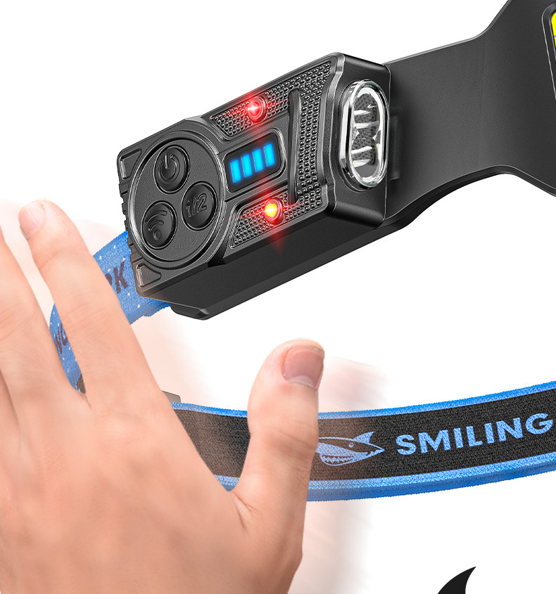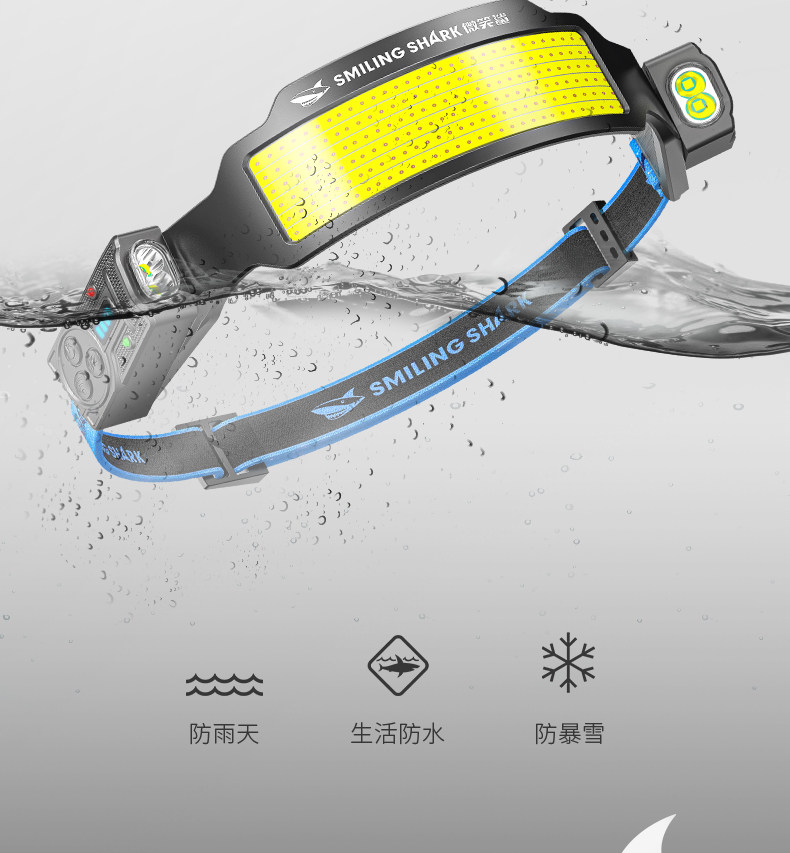 微笑鯊2026新款頭燈戶外大容量照明夜釣頭帶燈電顯感應釣魚工作燈