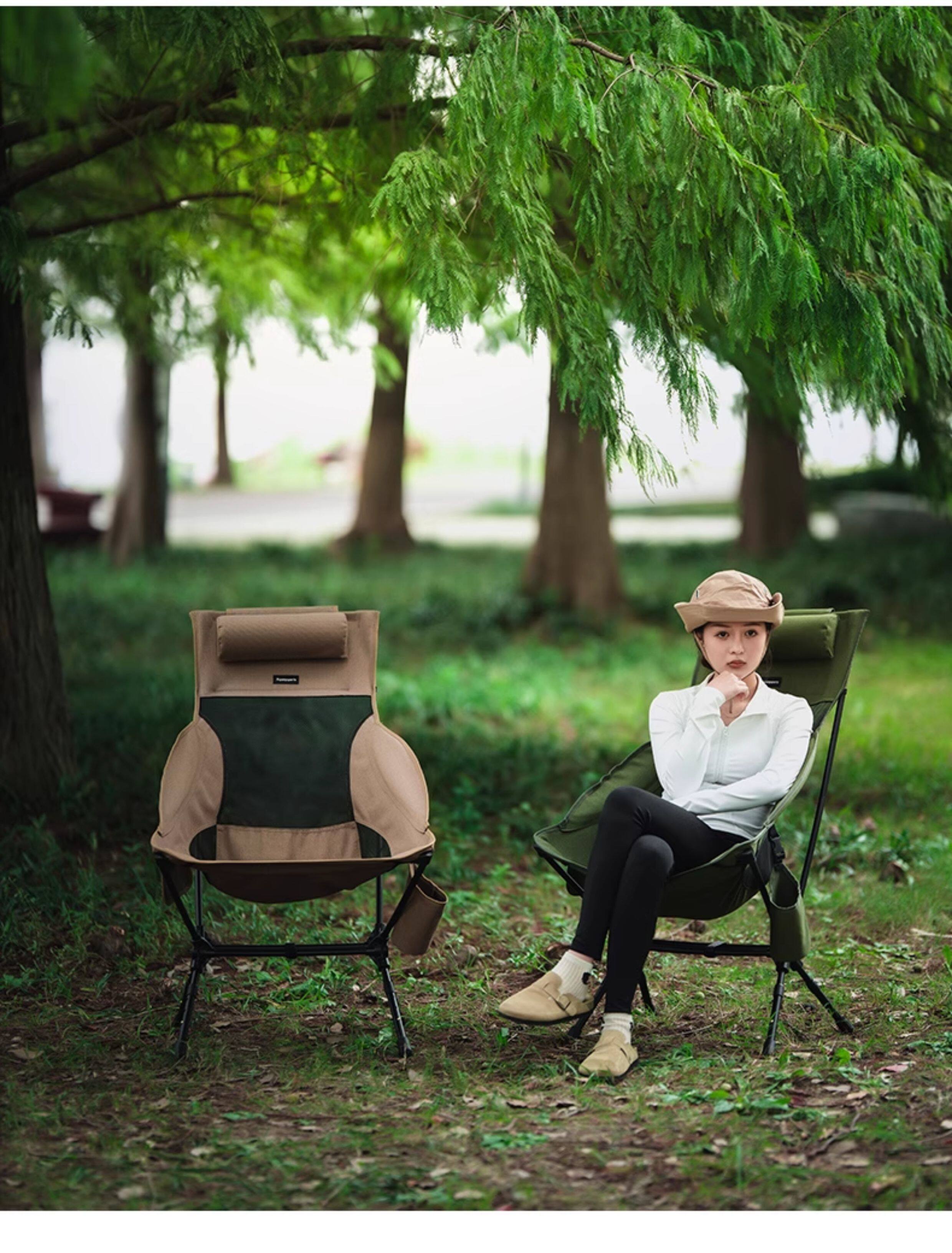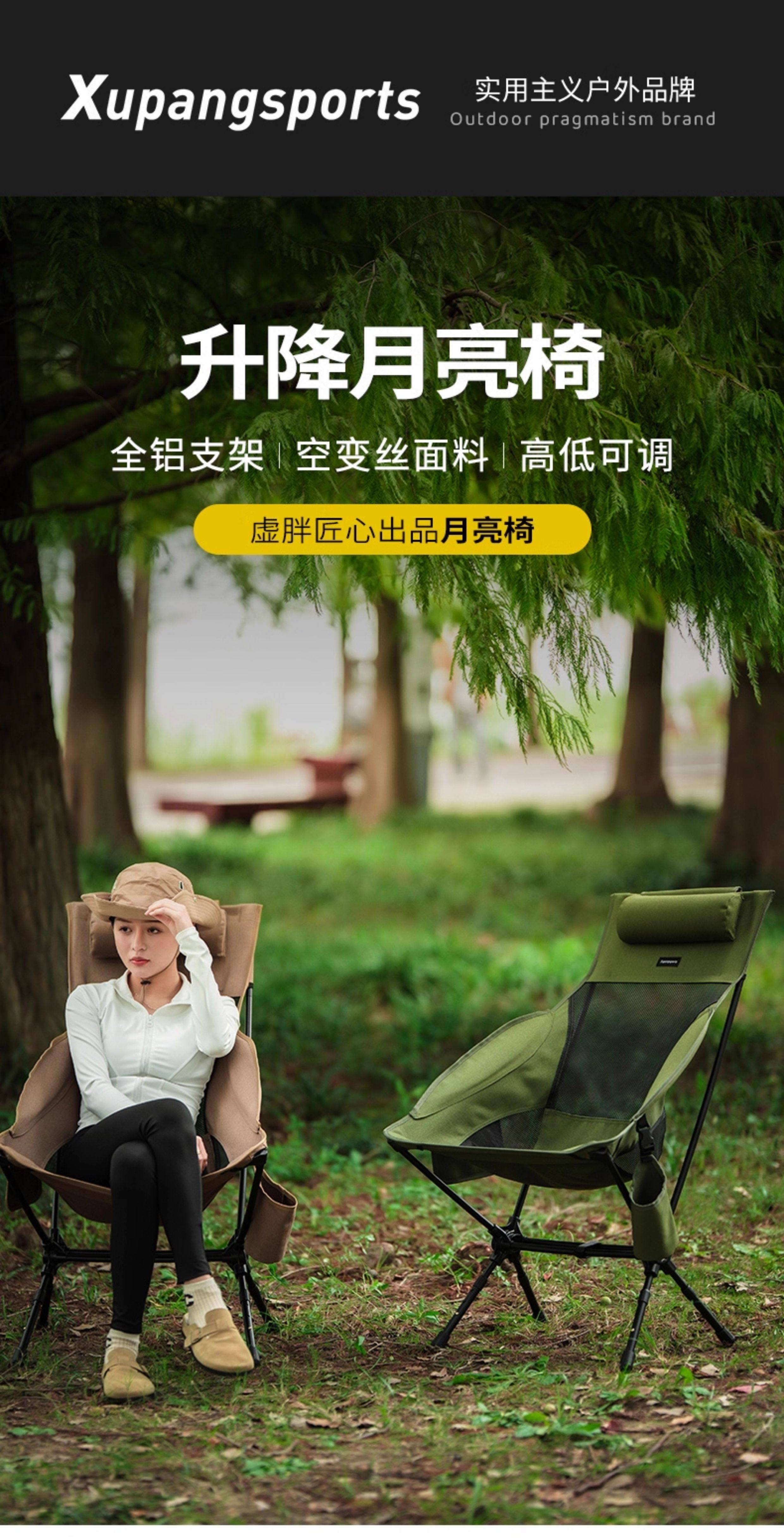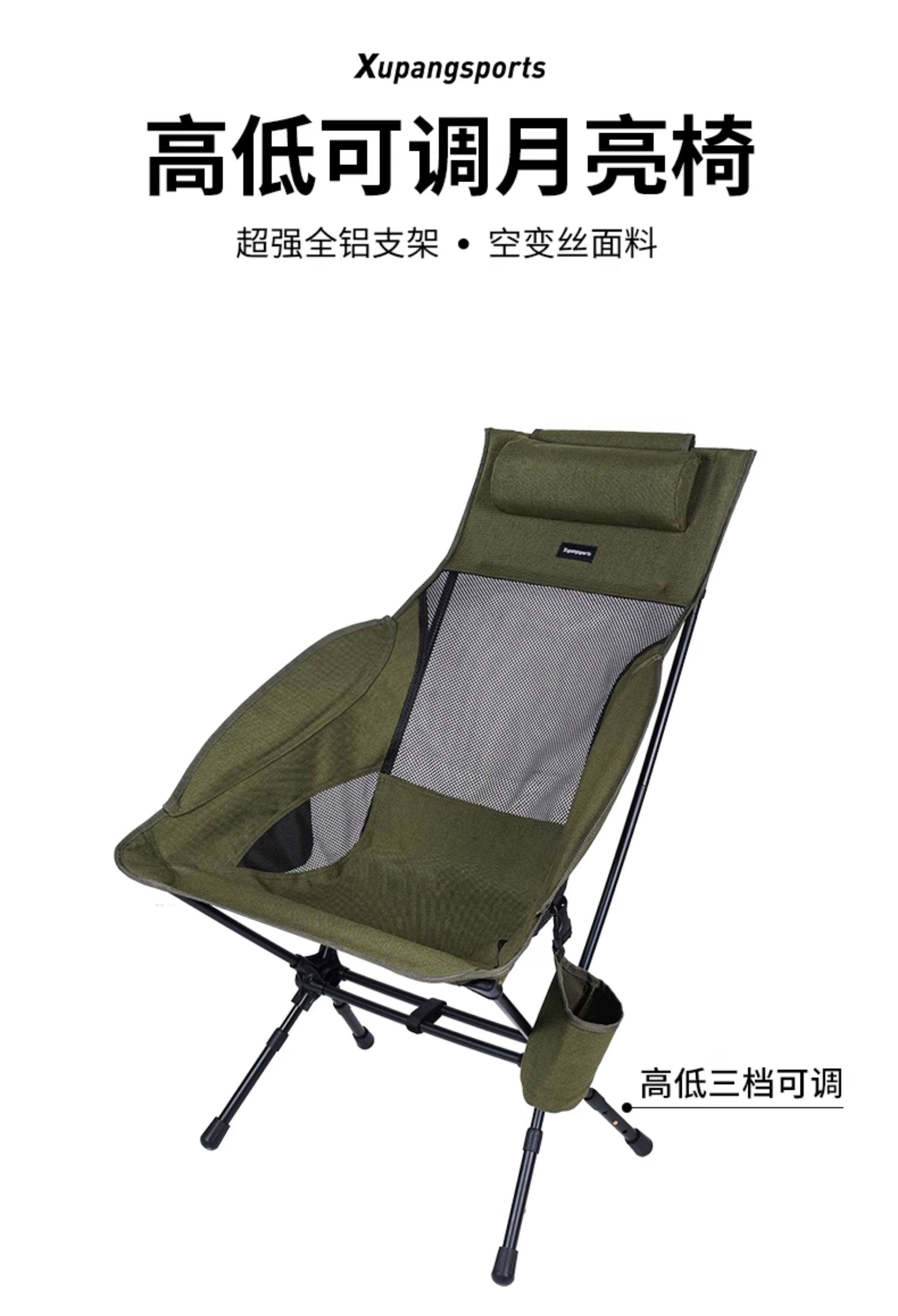 虛胖加高升降折疊椅子可攜式超輕7075航空鋁合金野餐露營躺平月亮椅