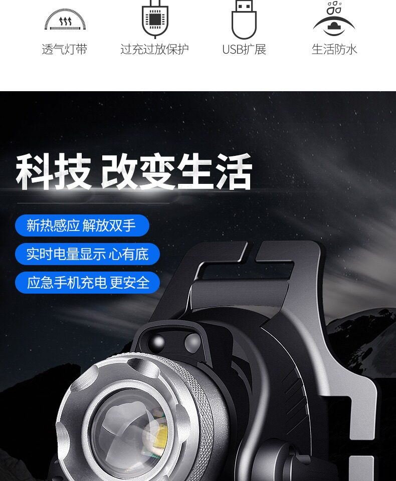頭燈強光充電超亮頭戴式夜釣魚感應超輕小號家用礦led手電筒疝氣