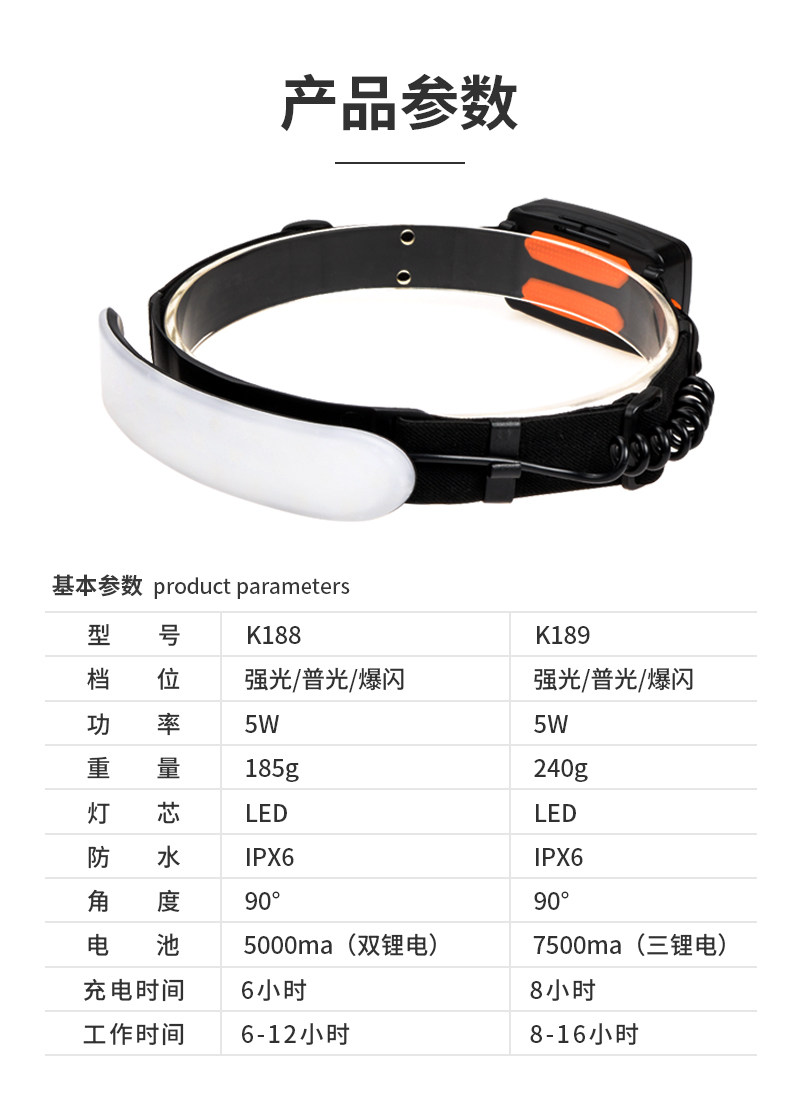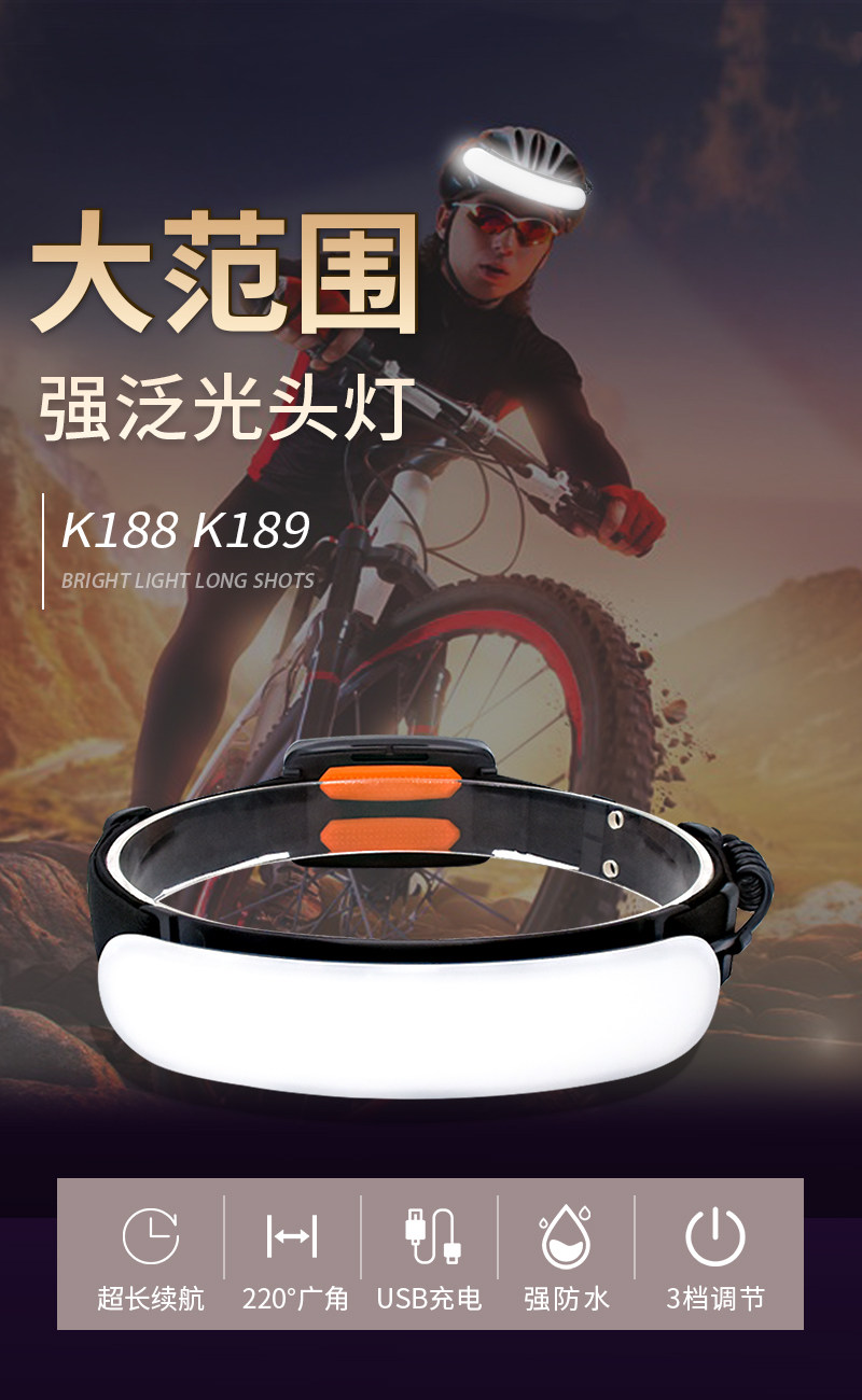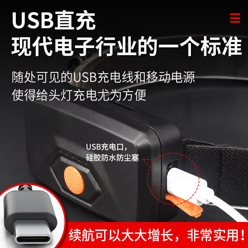 LED頭燈大面積泛光散光工作頭燈防水USB充電超長續航安全帽散光燈