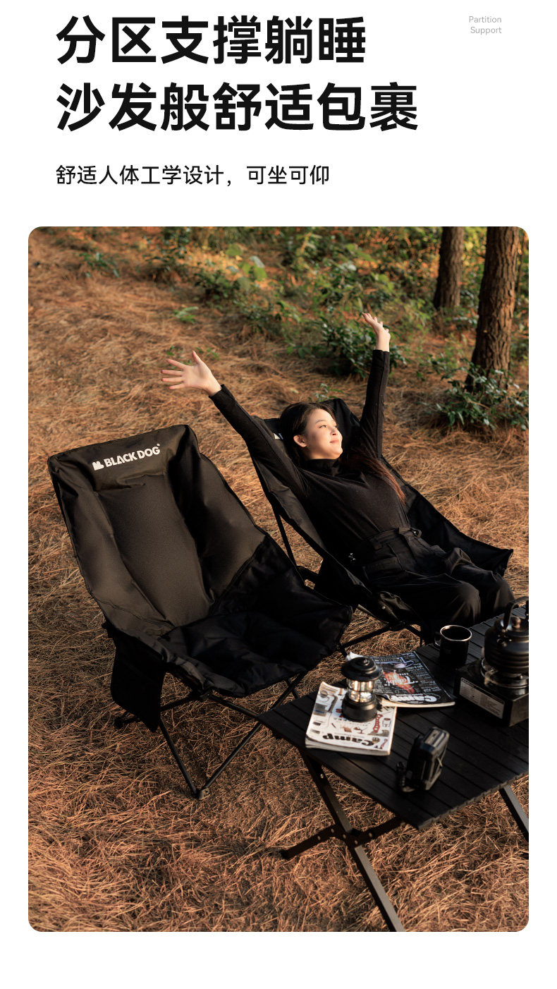 BLACKDOG黑狗浮月UC戶外可攜式折疊椅夾棉休閒椅子可調節露營躺椅