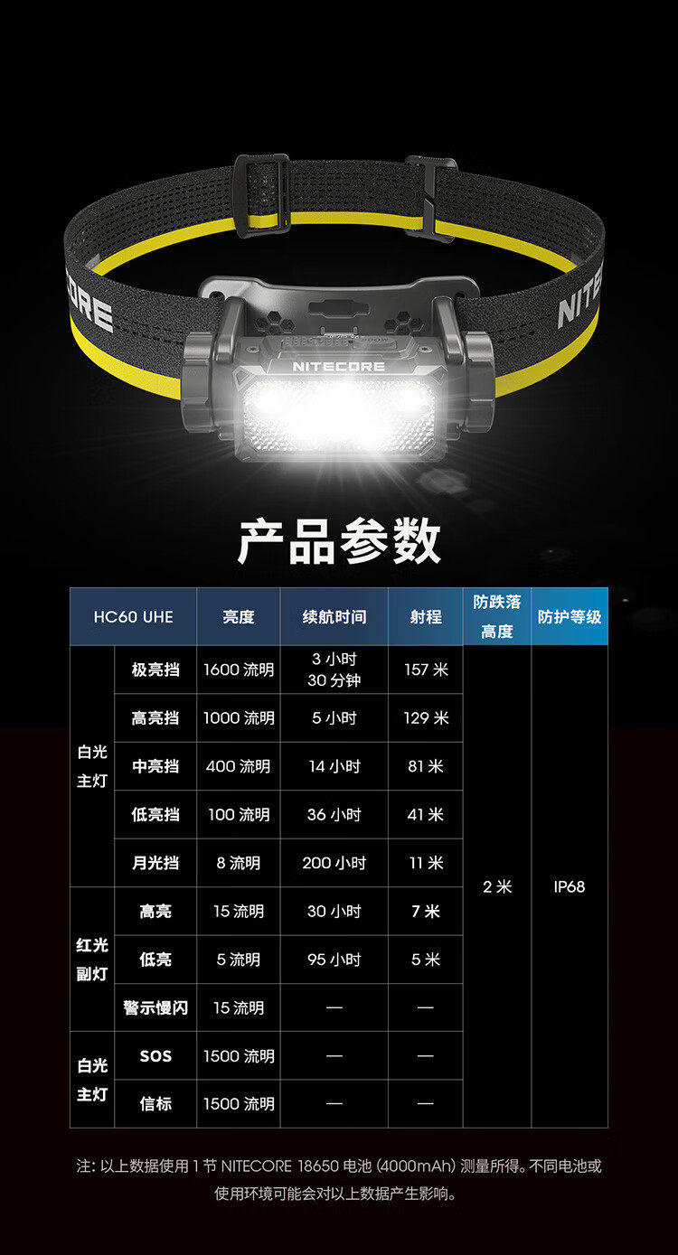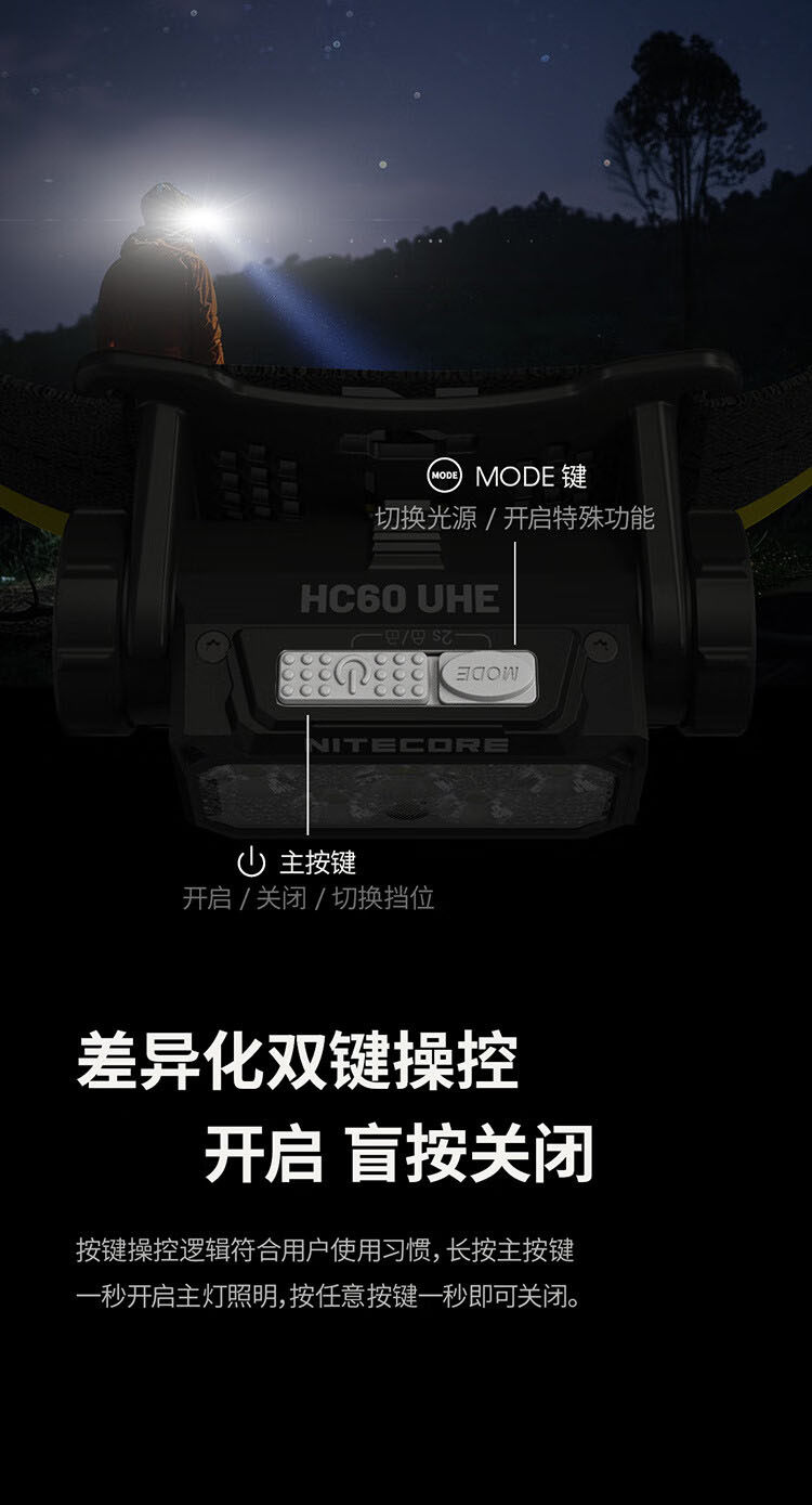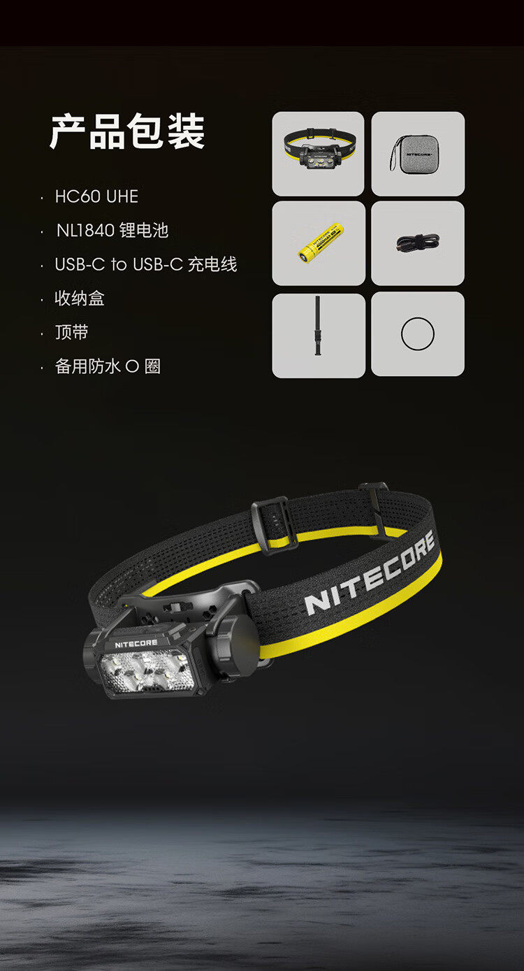 NITECORE 奈特科爾HC60 UHE高亮強光遠射頭燈戶外夜跑釣魚趕海
