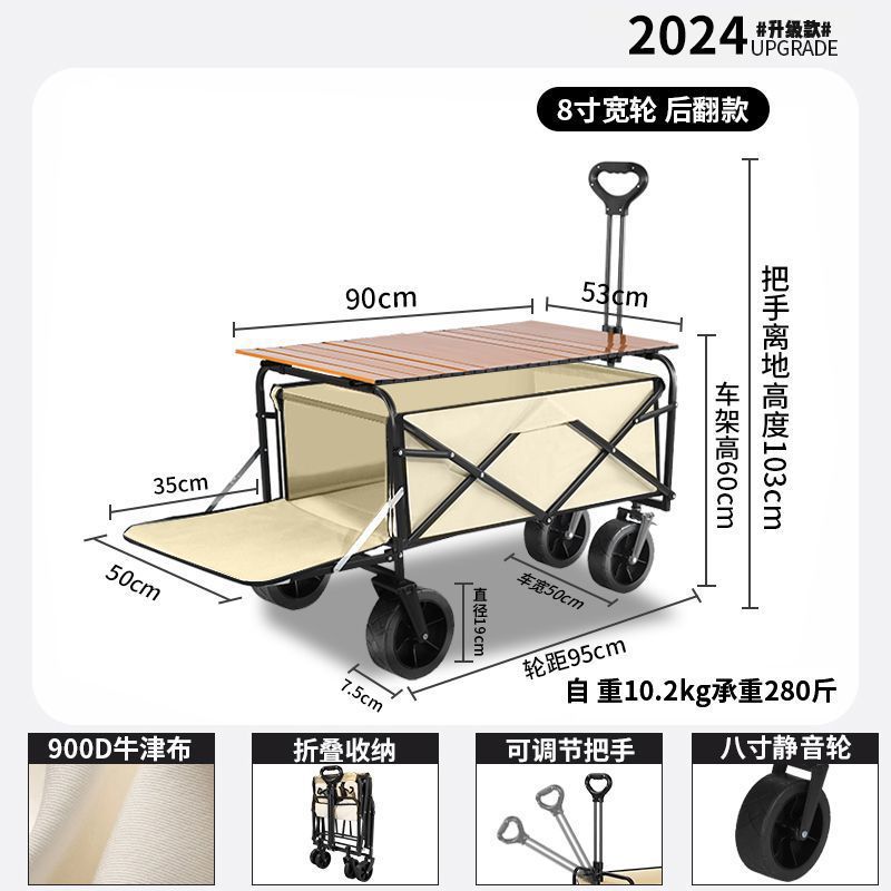 新款露營推車可折疊升降桌戶外手推車營地車擺攤小推車