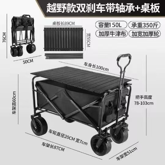 戶外露營車折疊擺攤車露營小推車擺地攤營地野餐車承重越野輪