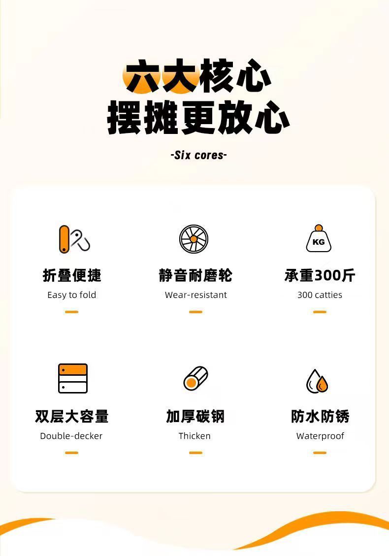 加粗方琯擺攤小推車可折疊冰粉甜品花車貨架壽司夜市移動出攤