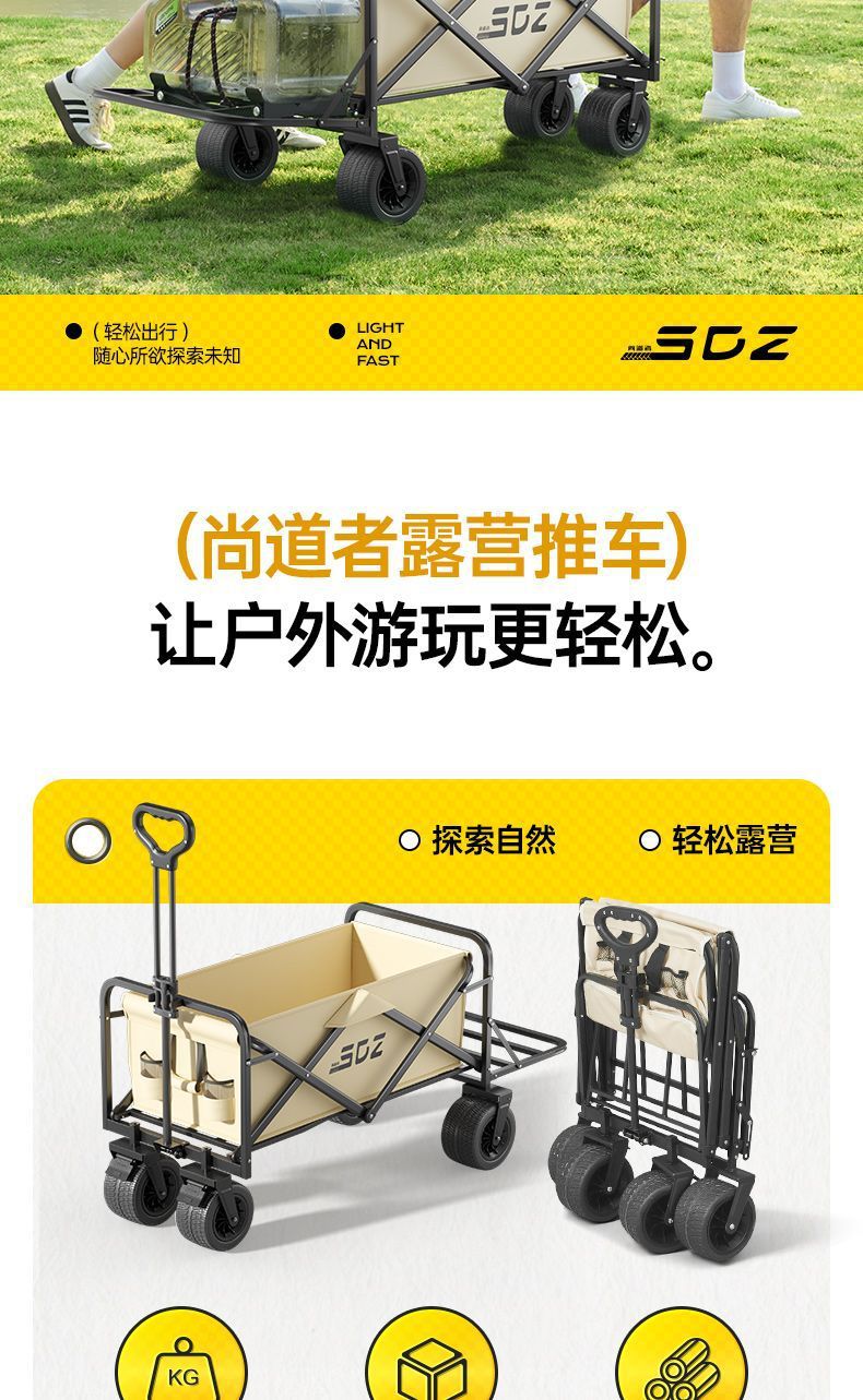 擺攤小推車可折疊戶外手推野餐可攜式營地拖車拉桿多功能露營車