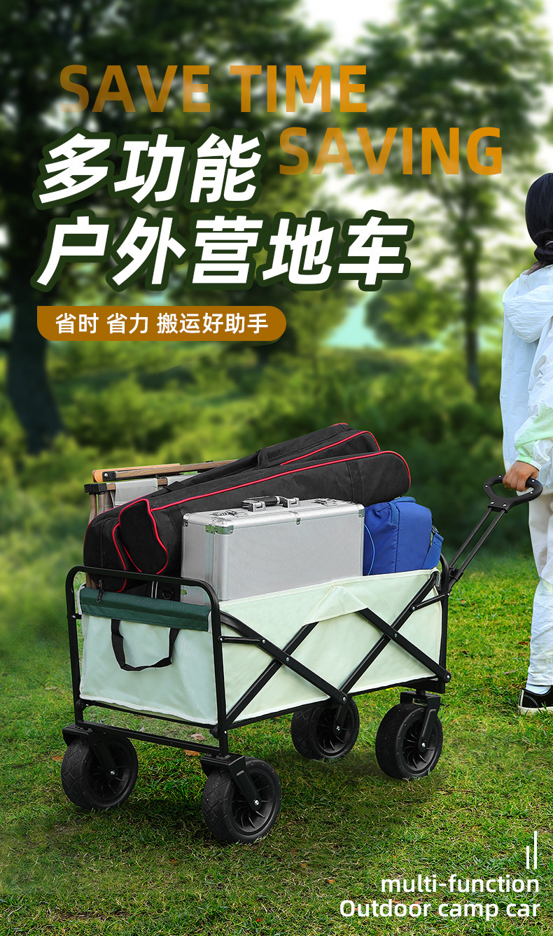2025新款戶外拖車折疊營地車購物露營野營地小推車擺攤小推拉貨車