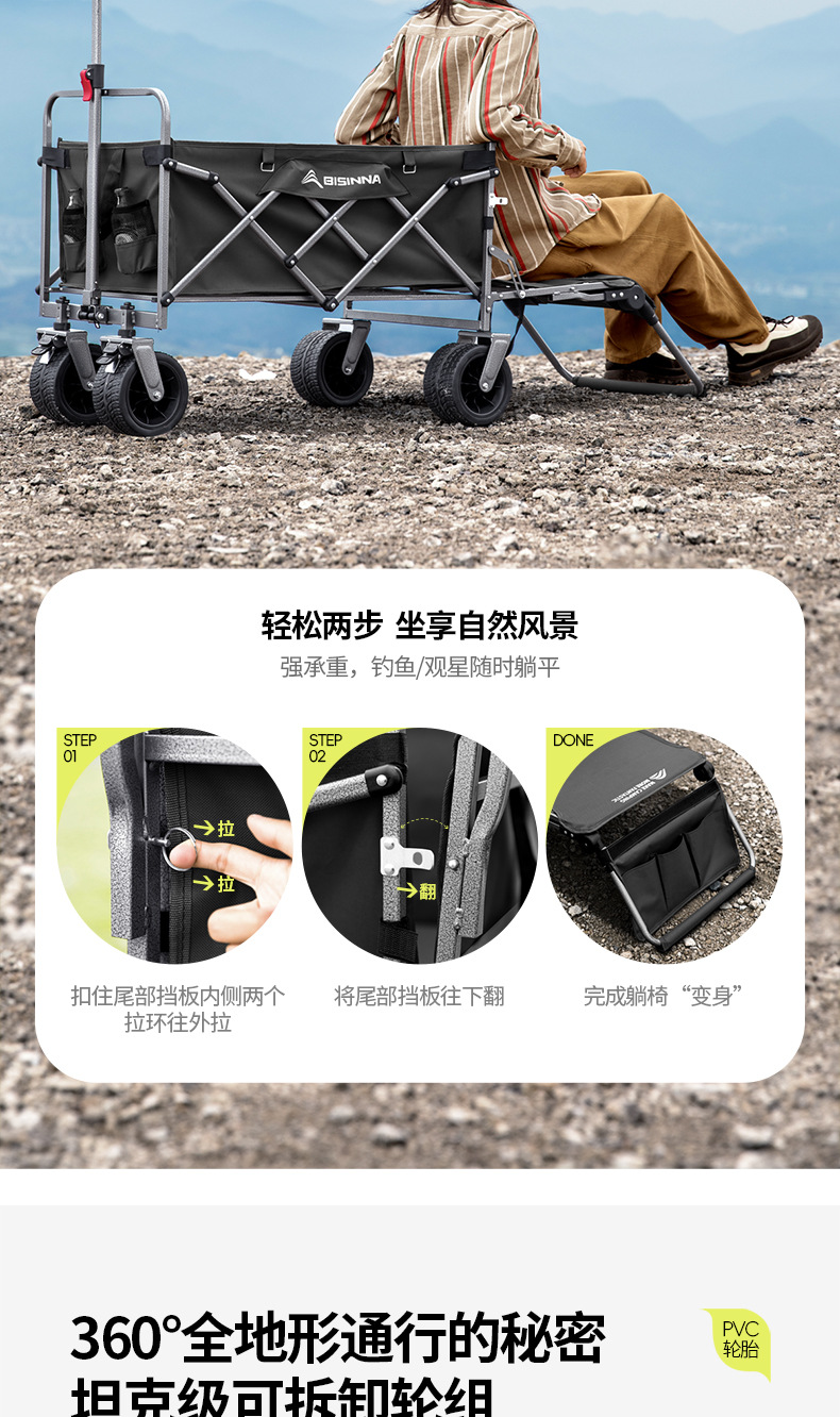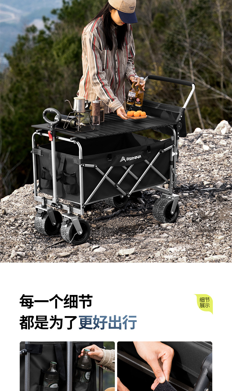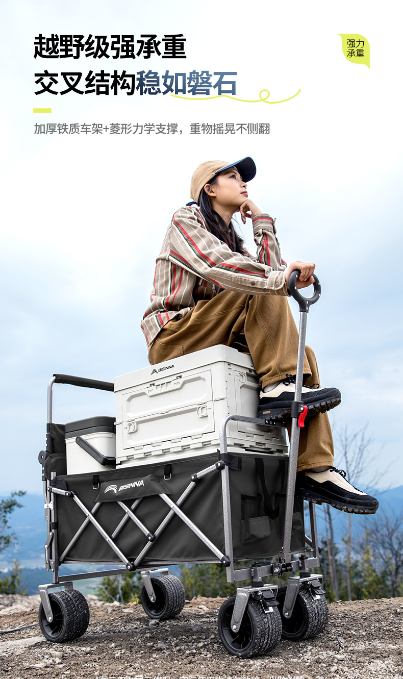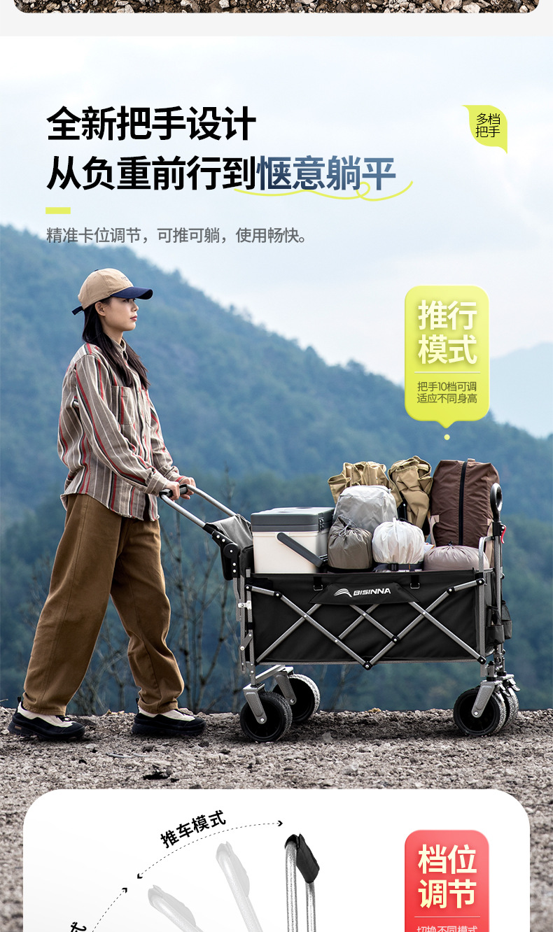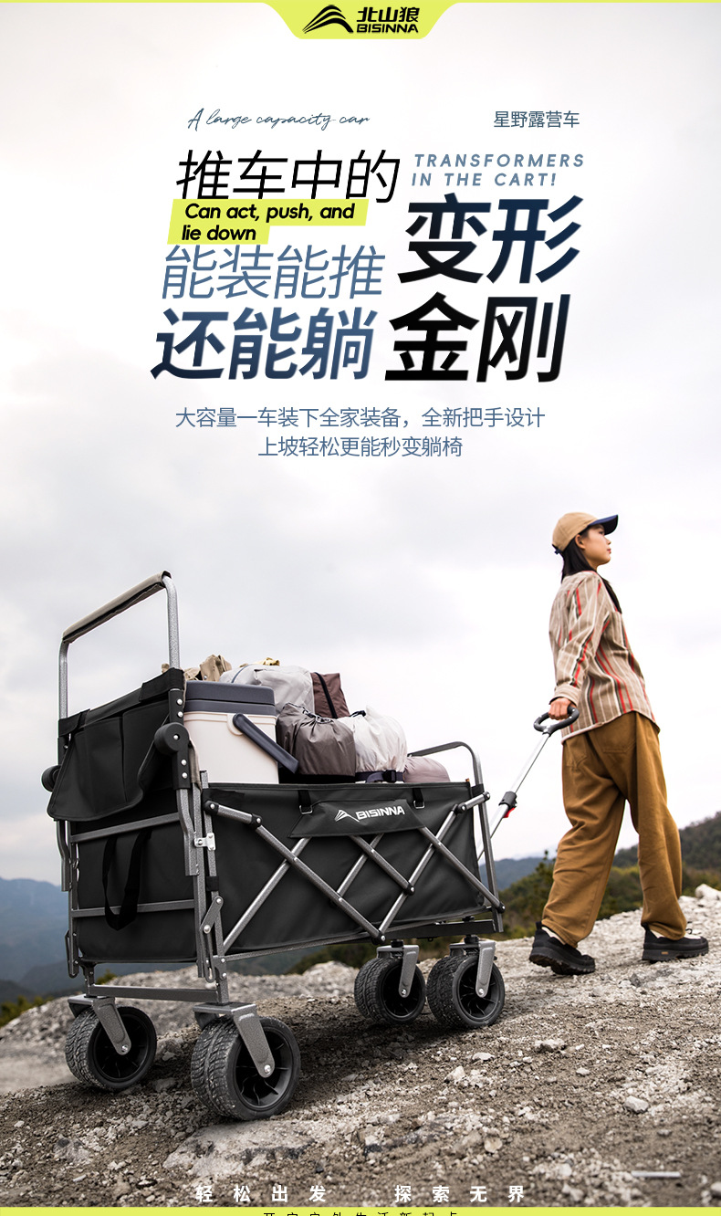 北山狼露營車戶外可折疊手推車大號野餐兒童可躺野營拖車桌板擺攤