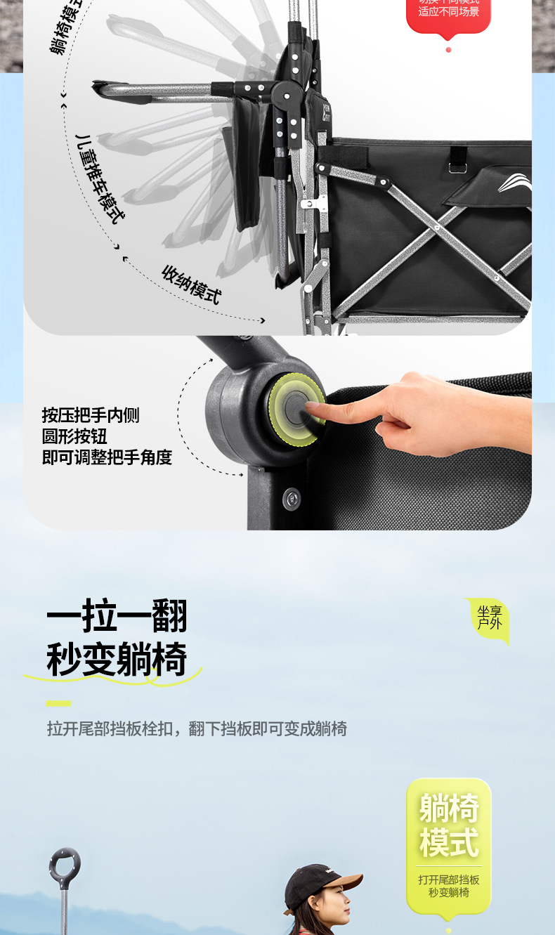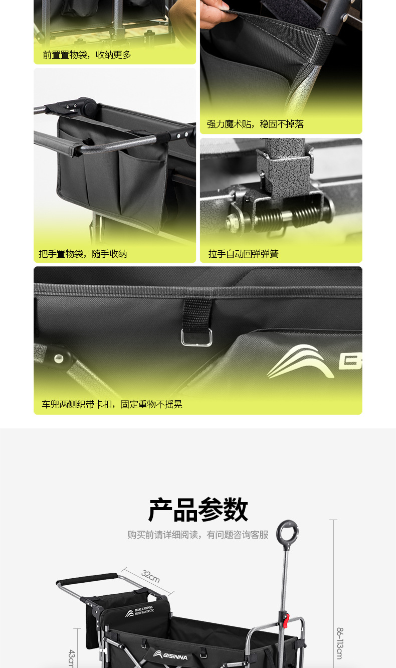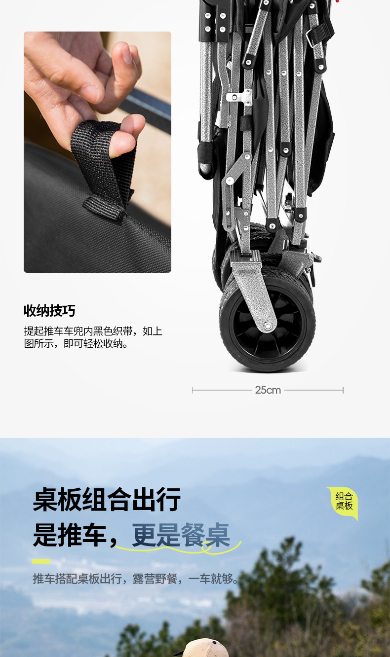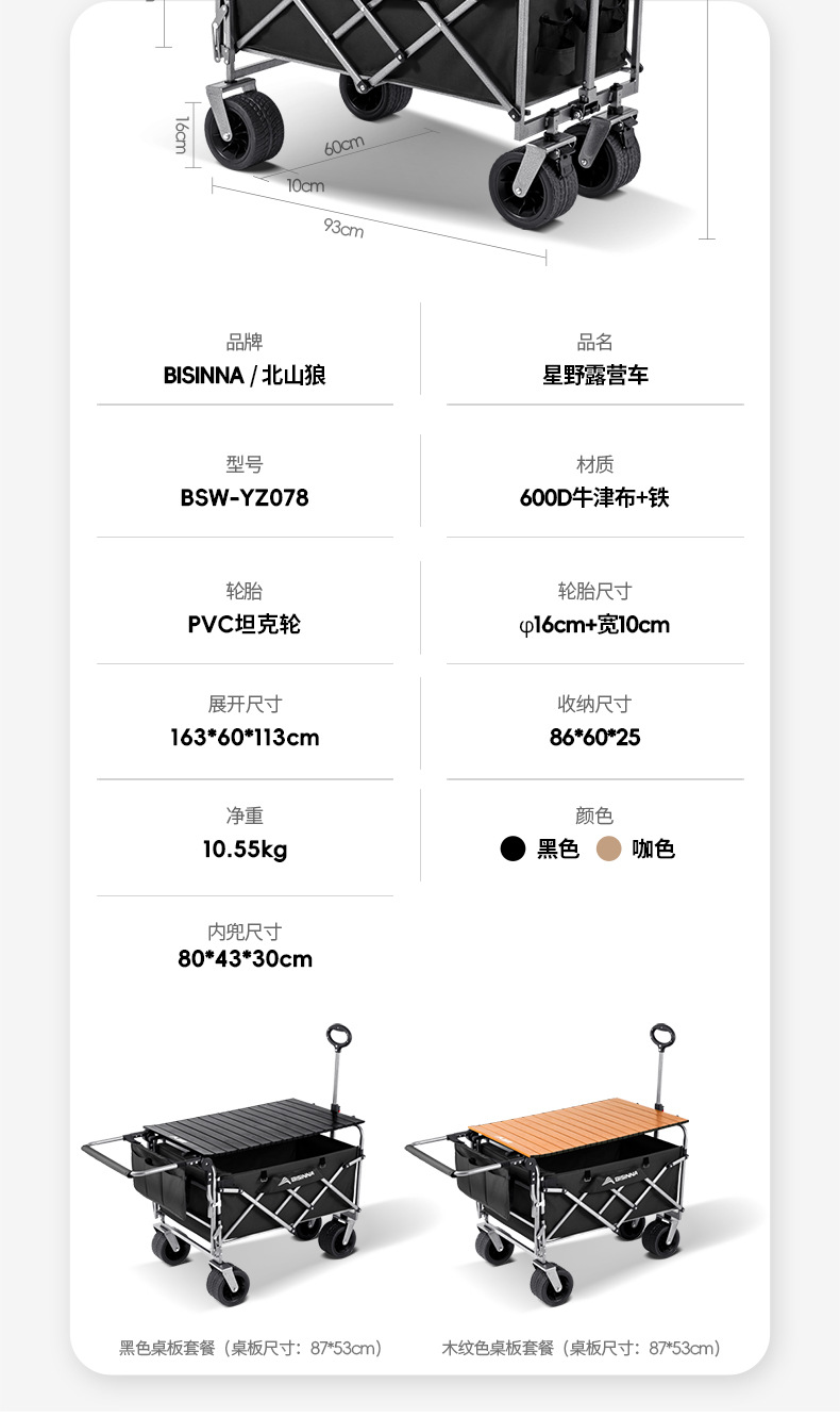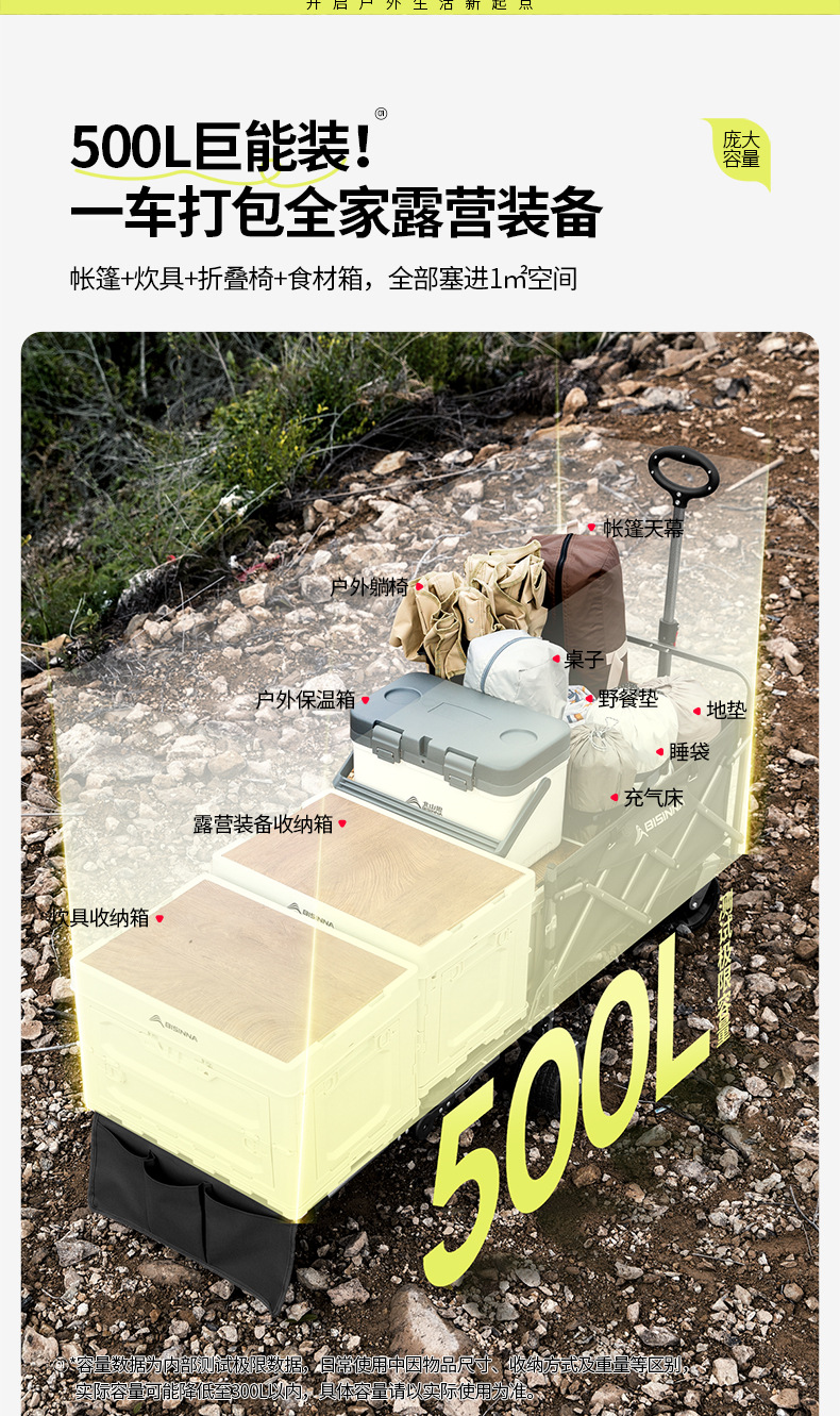 北山狼露營車戶外可折疊手推車大號野餐兒童可躺野營拖車桌板擺攤
