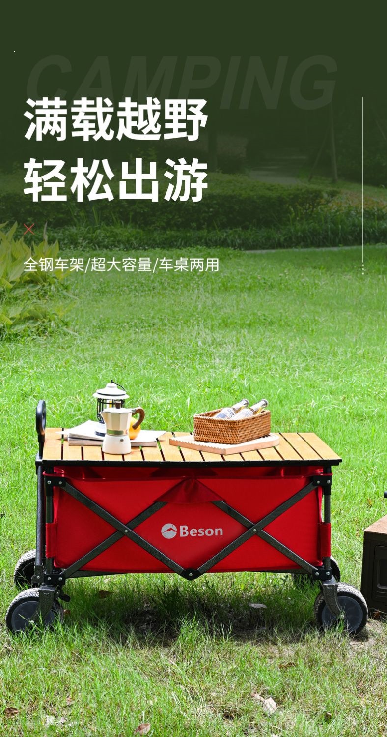 聚攏型露營車戶外折疊營地車小推車拖車移動擺攤車旅行野營手拉車