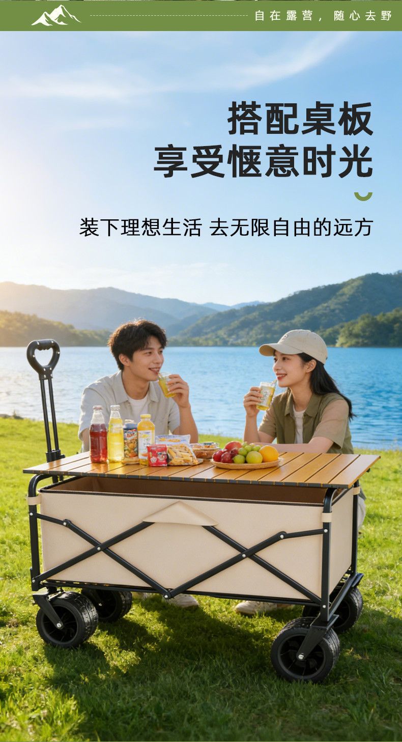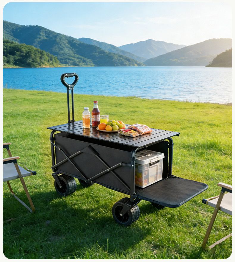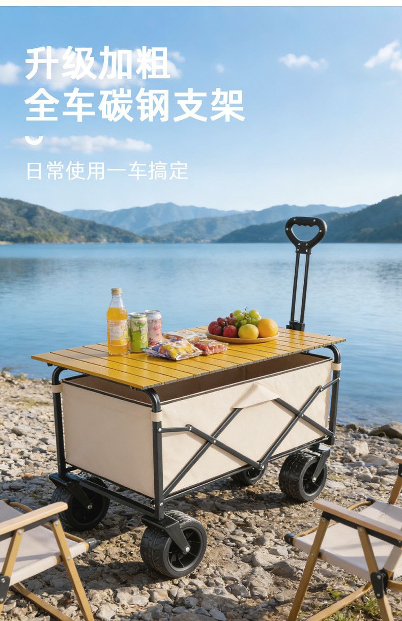 露營車戶外可折疊推車營地車野餐車拖車野營手拉桿擺攤小推車