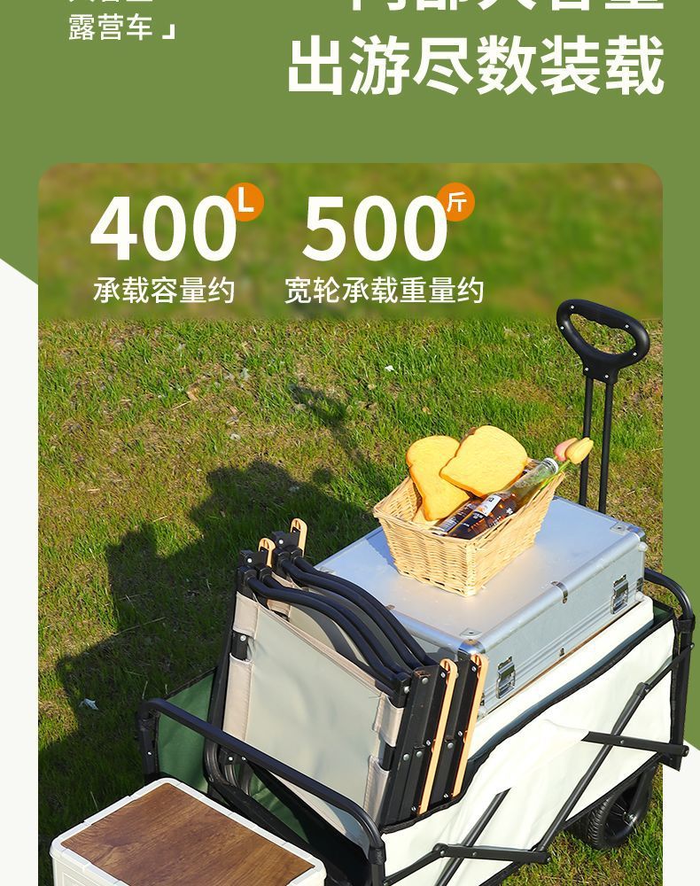 戶外露營推車可折疊手推野餐車營地車小拉車可遮陽露