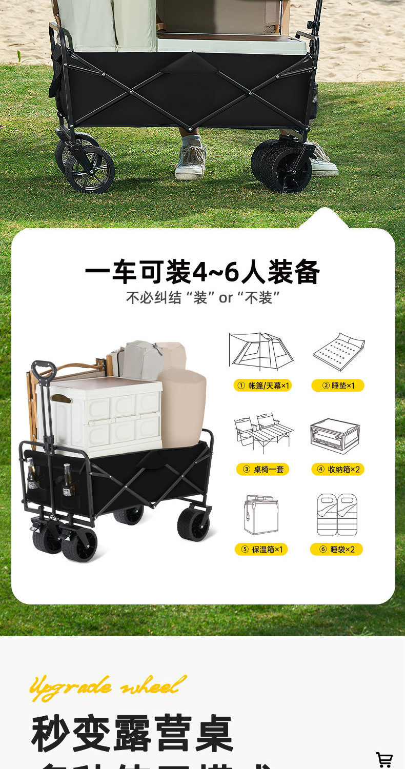 露營車戶外折疊露營推車擺攤小推車野營野餐營地拖車收納旅行專用