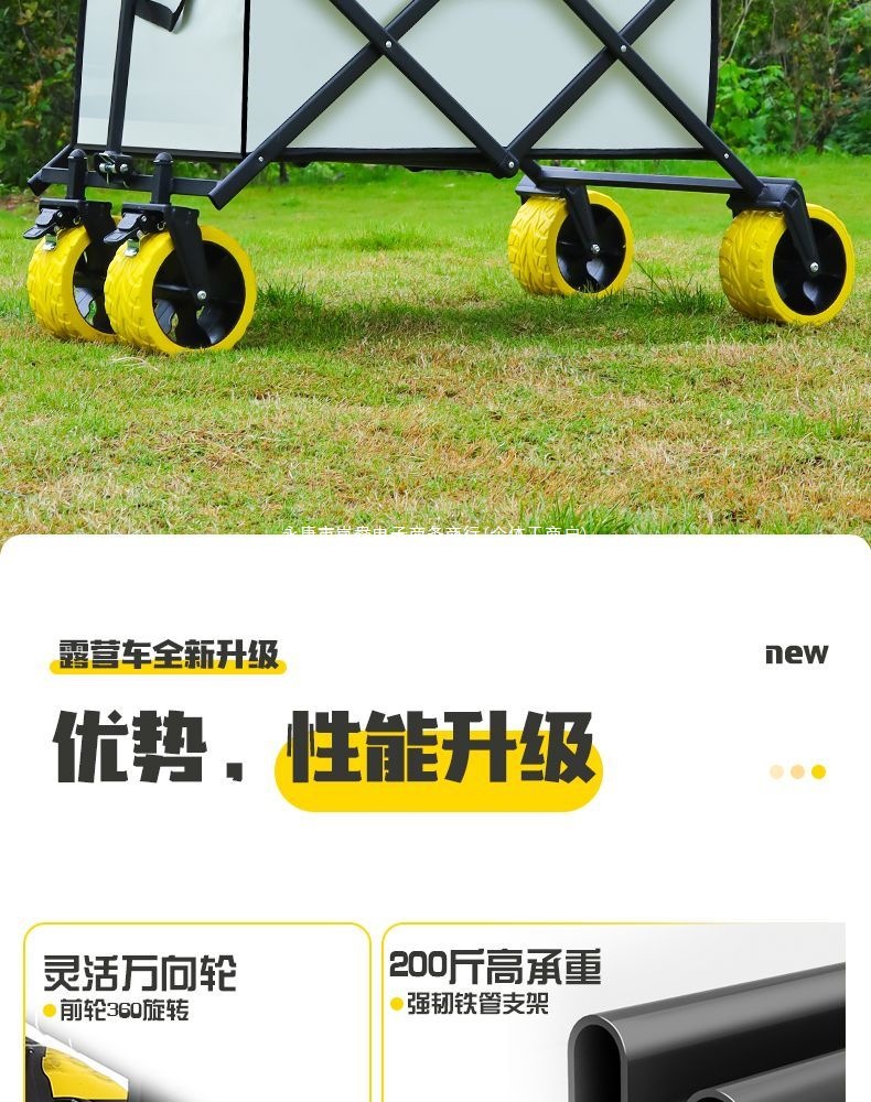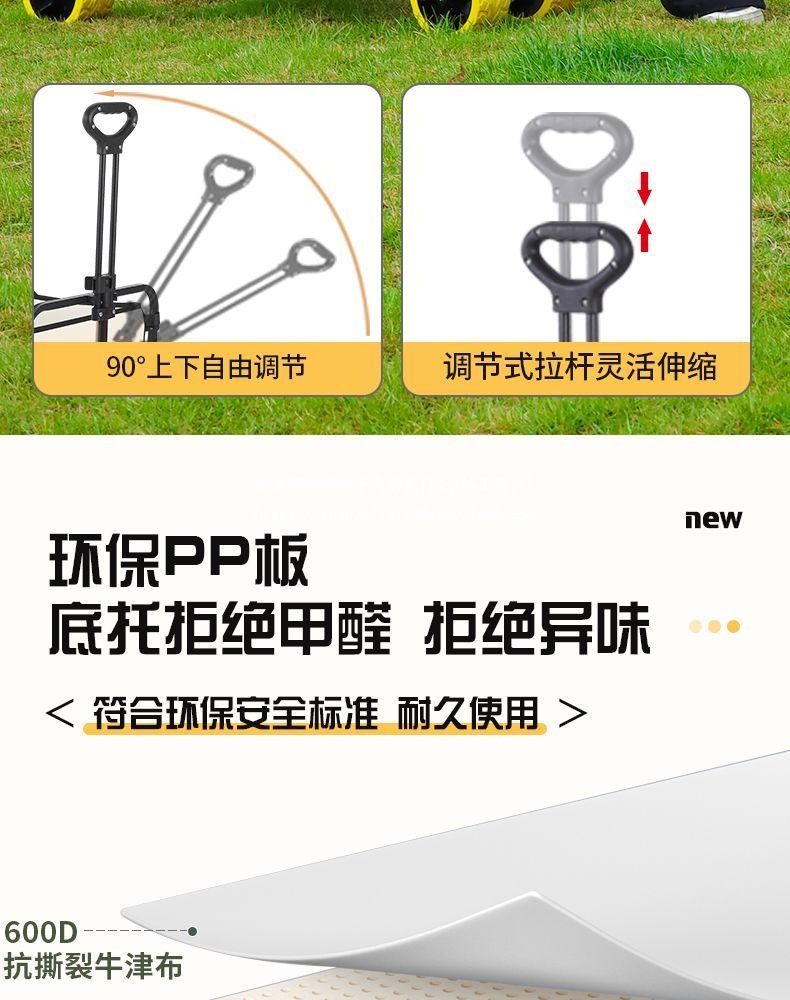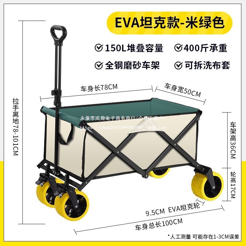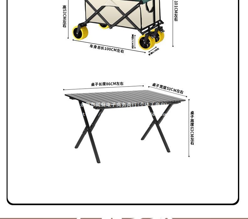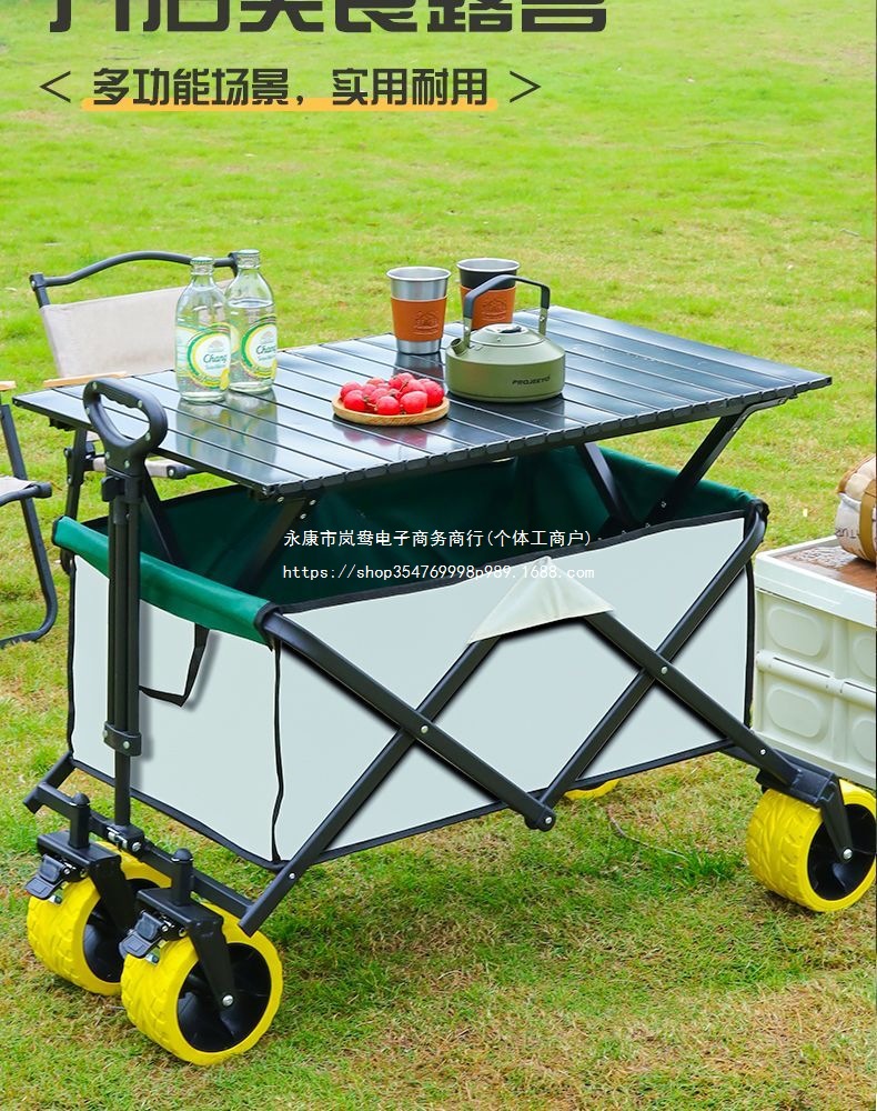 | 顔色 | 出口品質【加粗鋼架/加厚面料】-桌子套裝【米綠】拖鬥款飛機輪營地車+黑色長桌 |