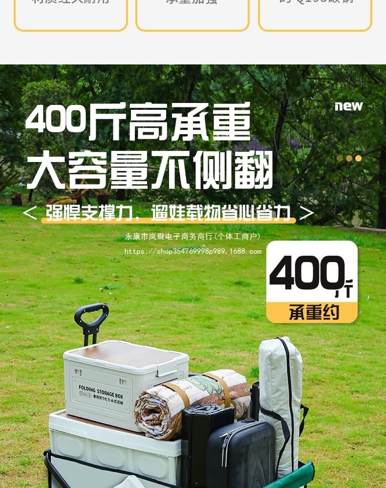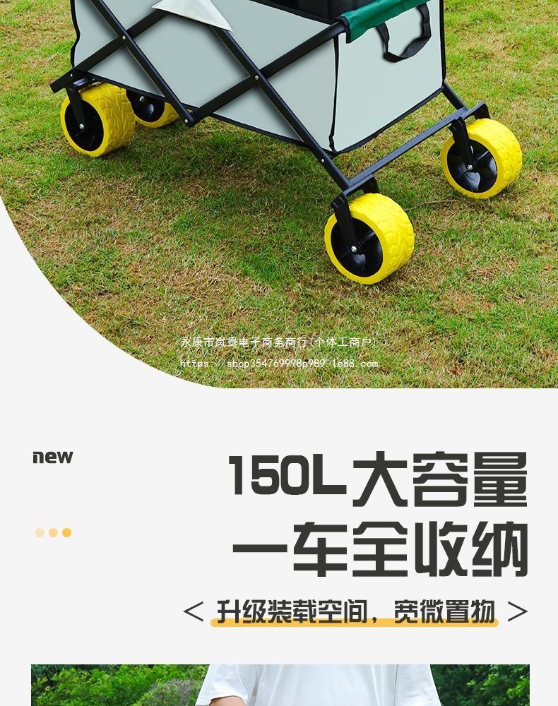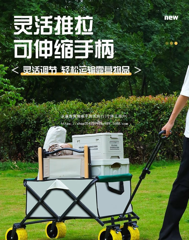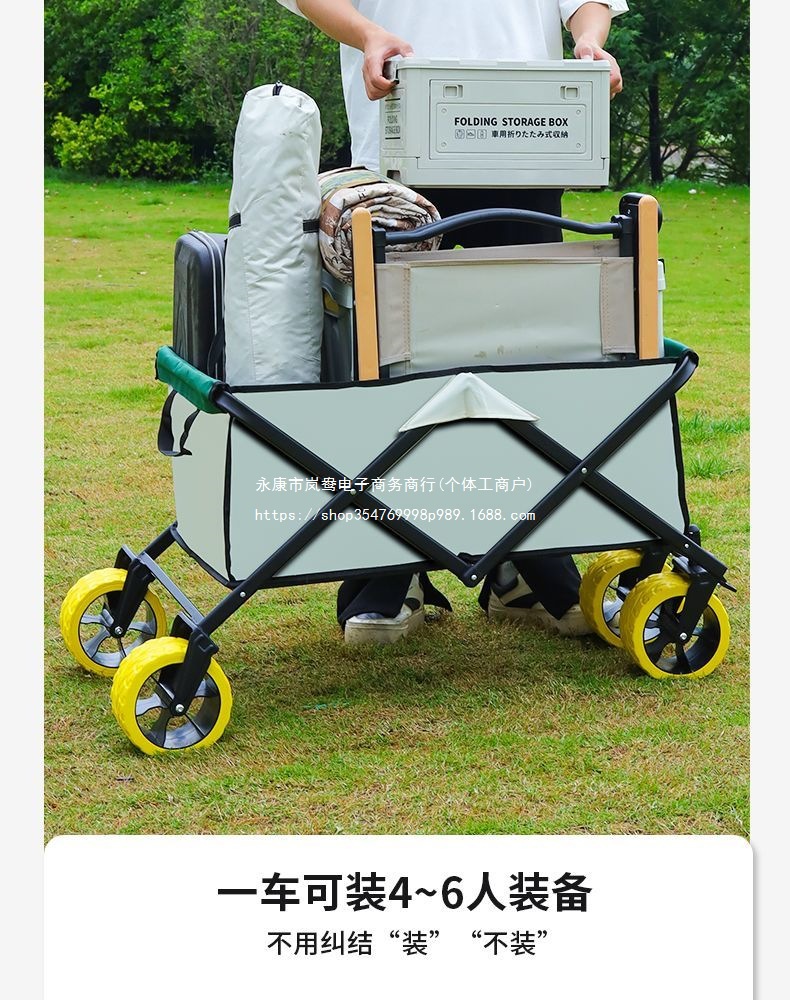 | 顔色 | 出口品質【加粗鋼架/加厚面料】-桌子套裝【米綠】拖鬥款飛機輪營地車+黑色長桌 |