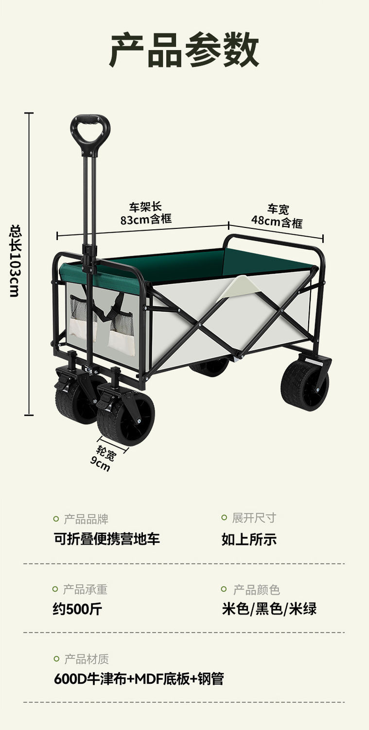 新款戶外手推車營地車露營推車可折疊可升降桌露營擺攤移動小推車