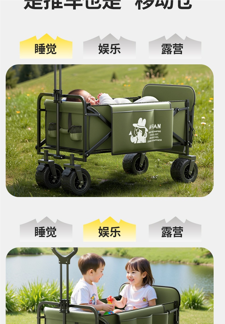 露營推車聚攏戶外折疊營地車拖車擺攤野營手拉車小推車野餐車桌板