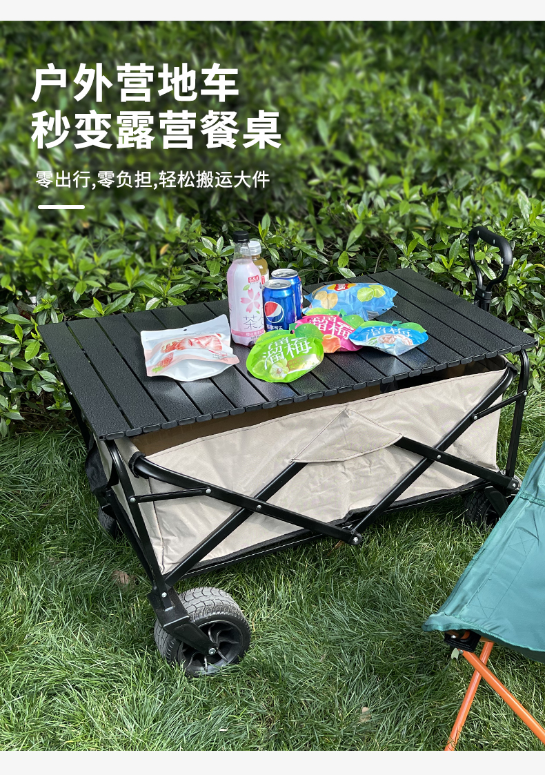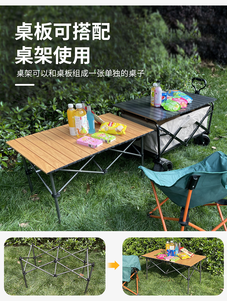 戶外露營車桌板折疊車拉桿車蓋板推車手拉營地車鋼合金蛋卷桌子面