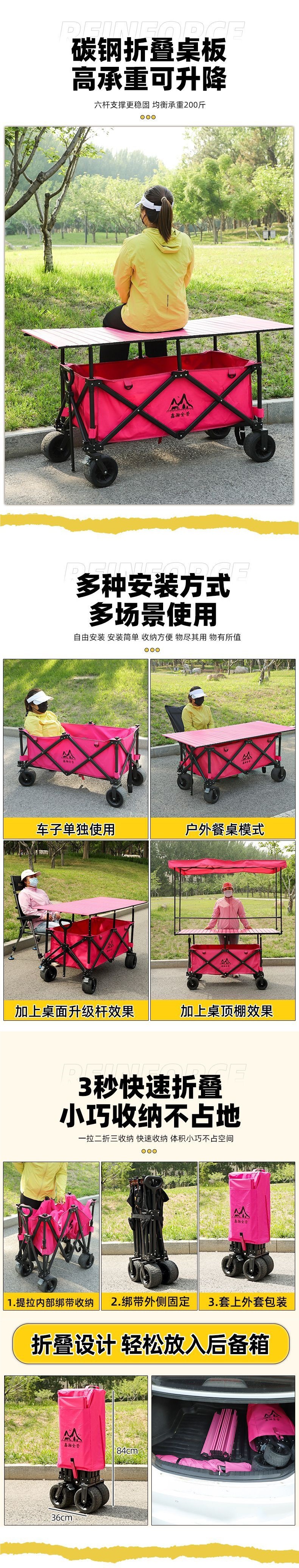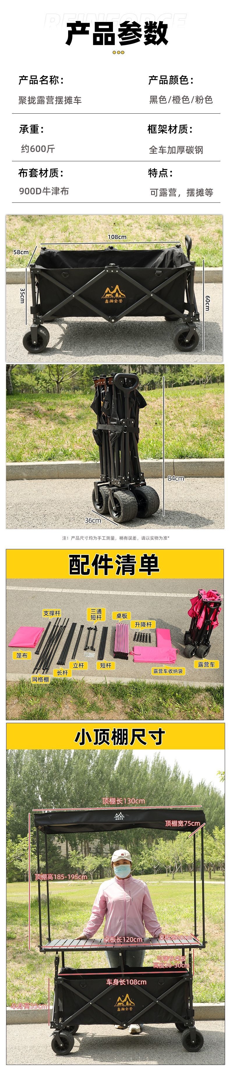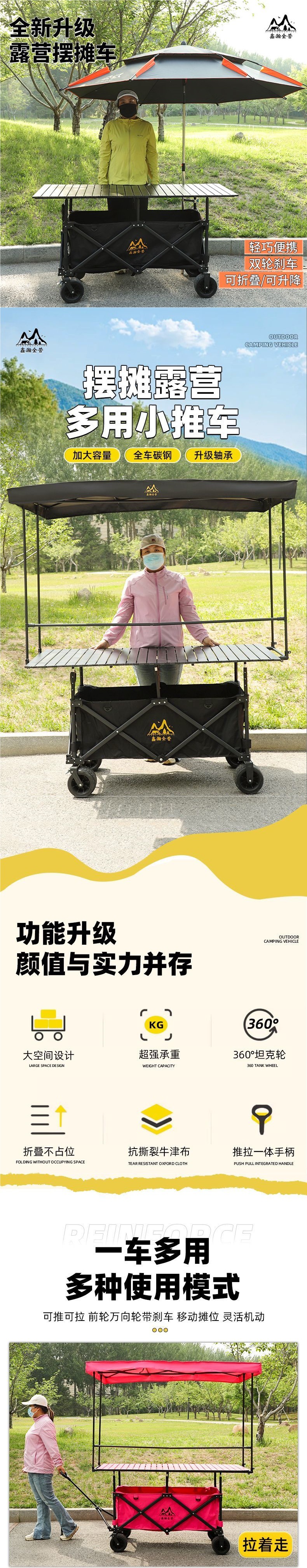 加長大桌板擺攤車可折疊升降碳鋼聚攏擺攤小吃車夜市帶遮陽露營車