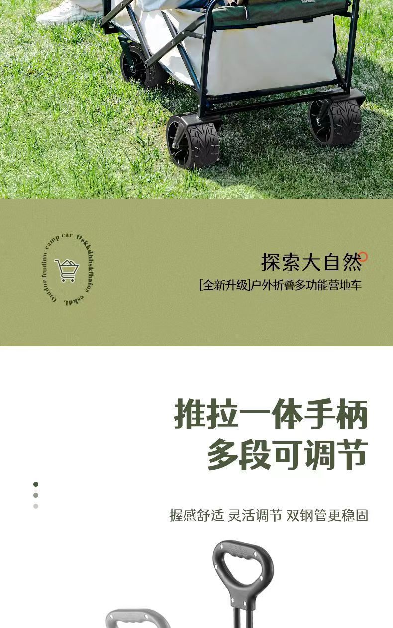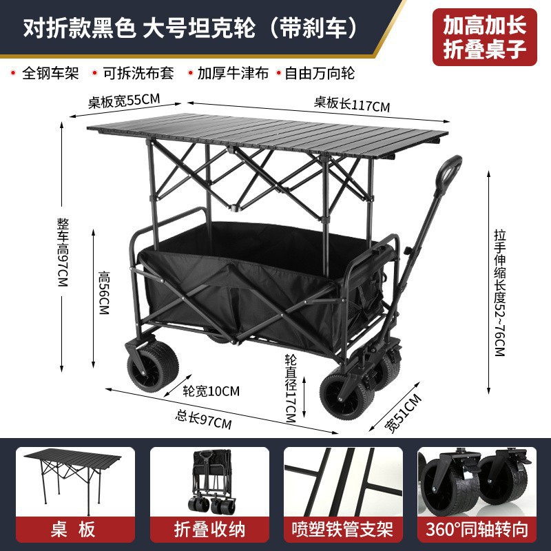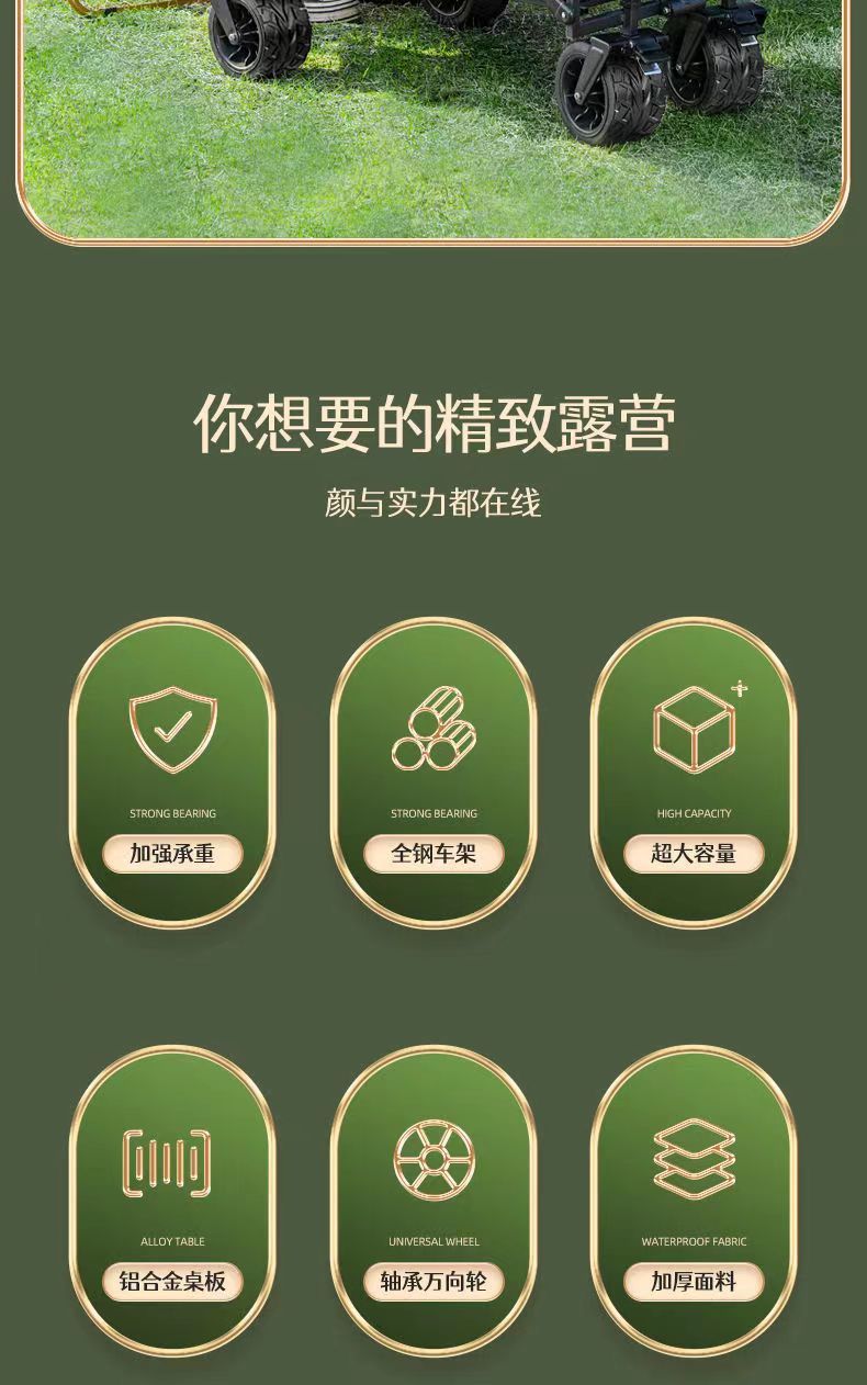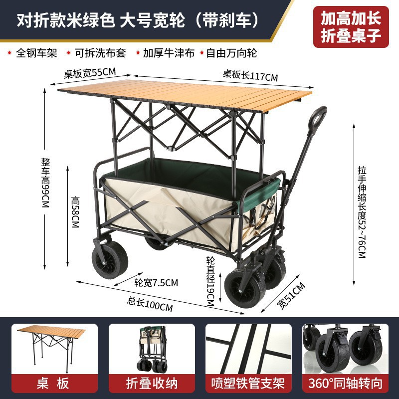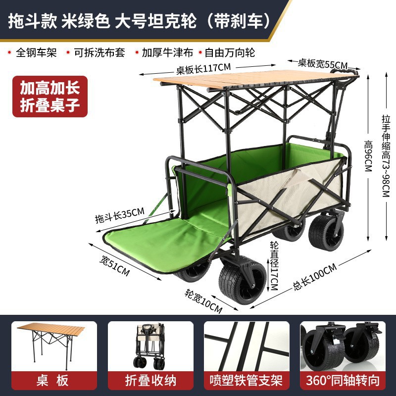| 顔色 | 營地車+折曡擺攤桌子(加長加高)】-大號坦克輪帶刹車(米綠) |