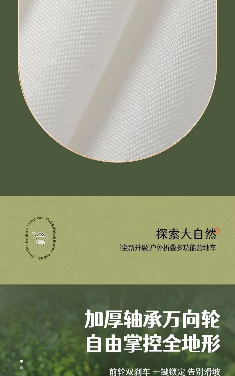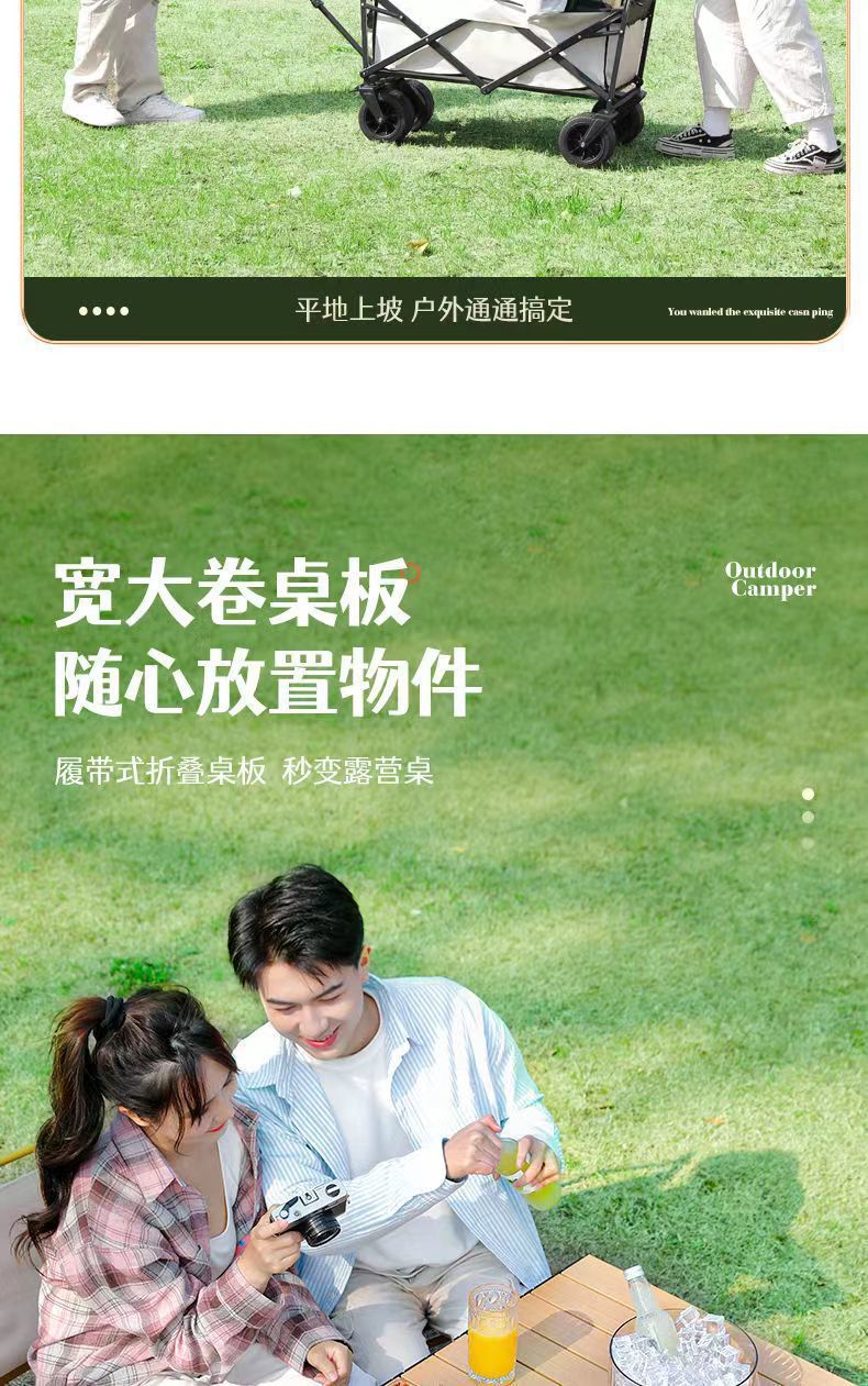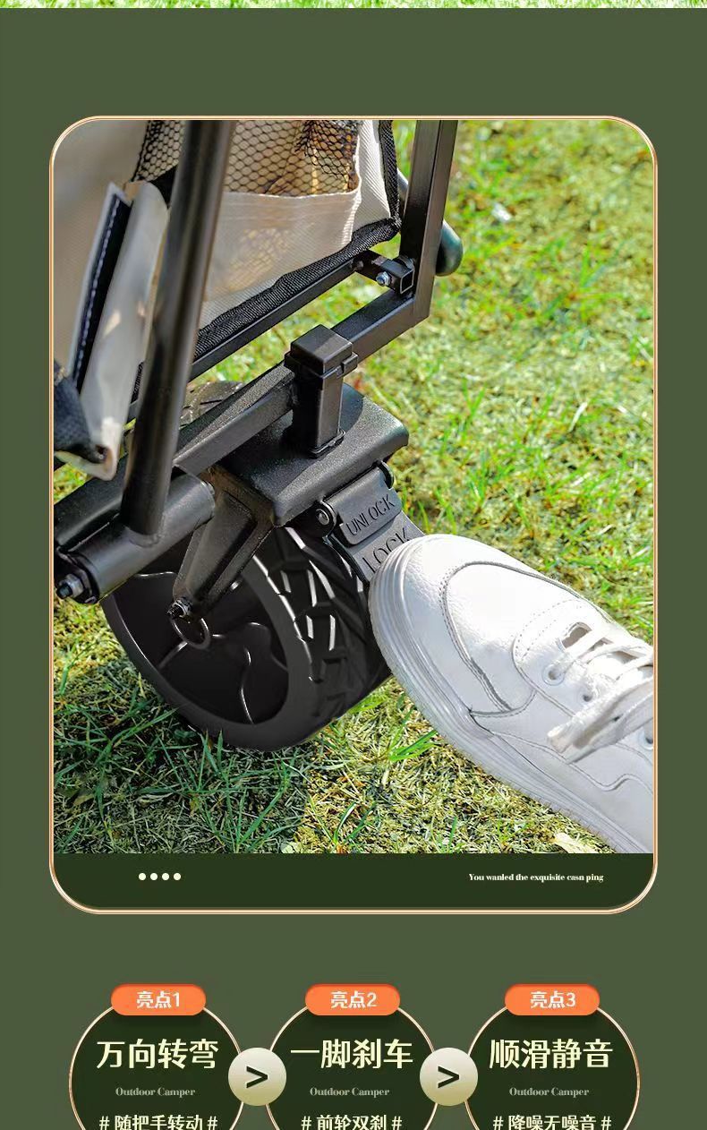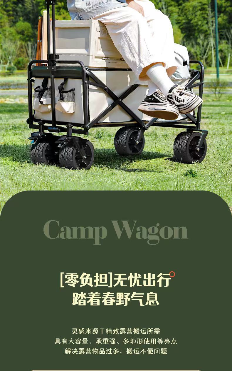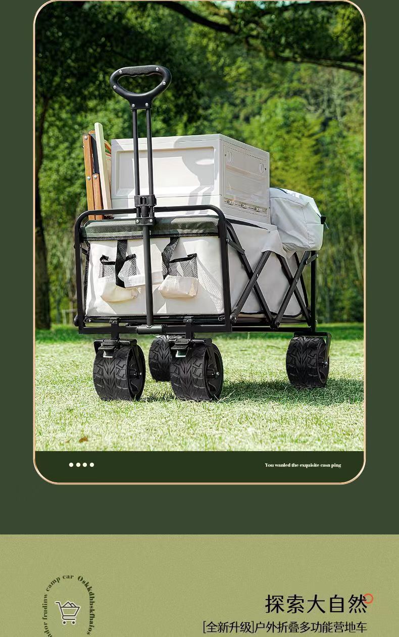 | 顔色 | 營地車+折曡擺攤桌子(加長加高)】-大號坦克輪帶刹車(米綠) |