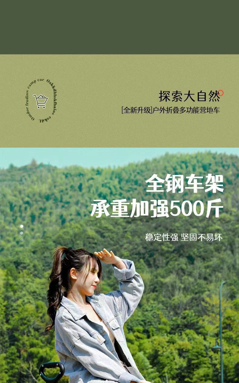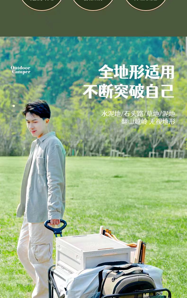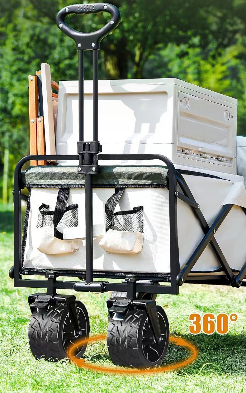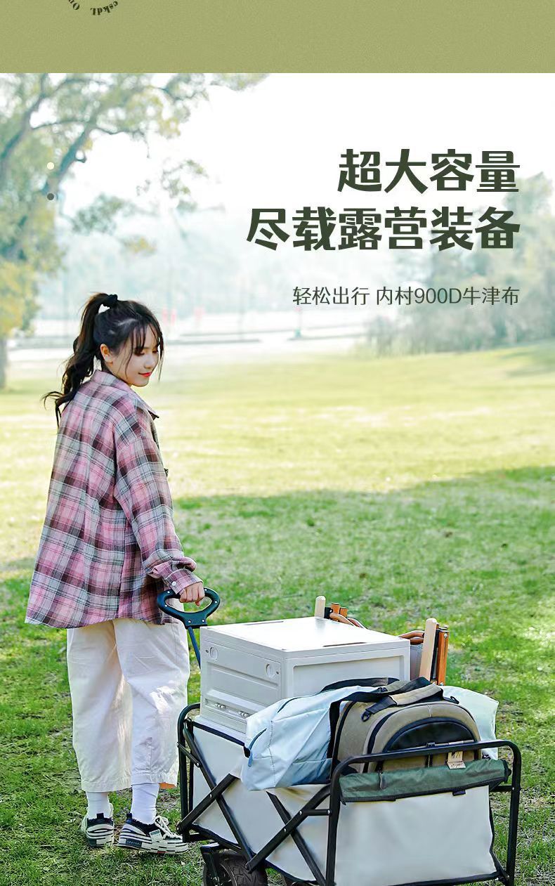 | 顔色 | 營地車+折曡擺攤桌子(加長加高)】-大號坦克輪帶刹車(米綠) |