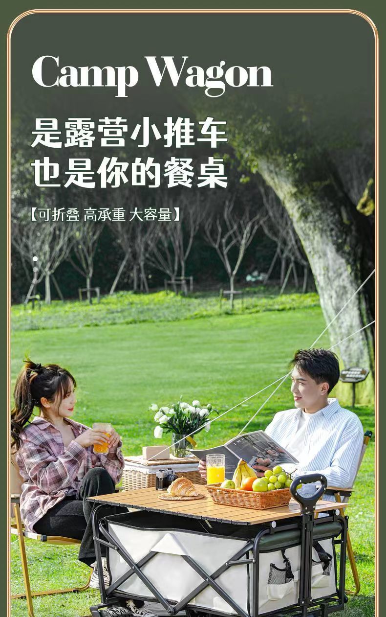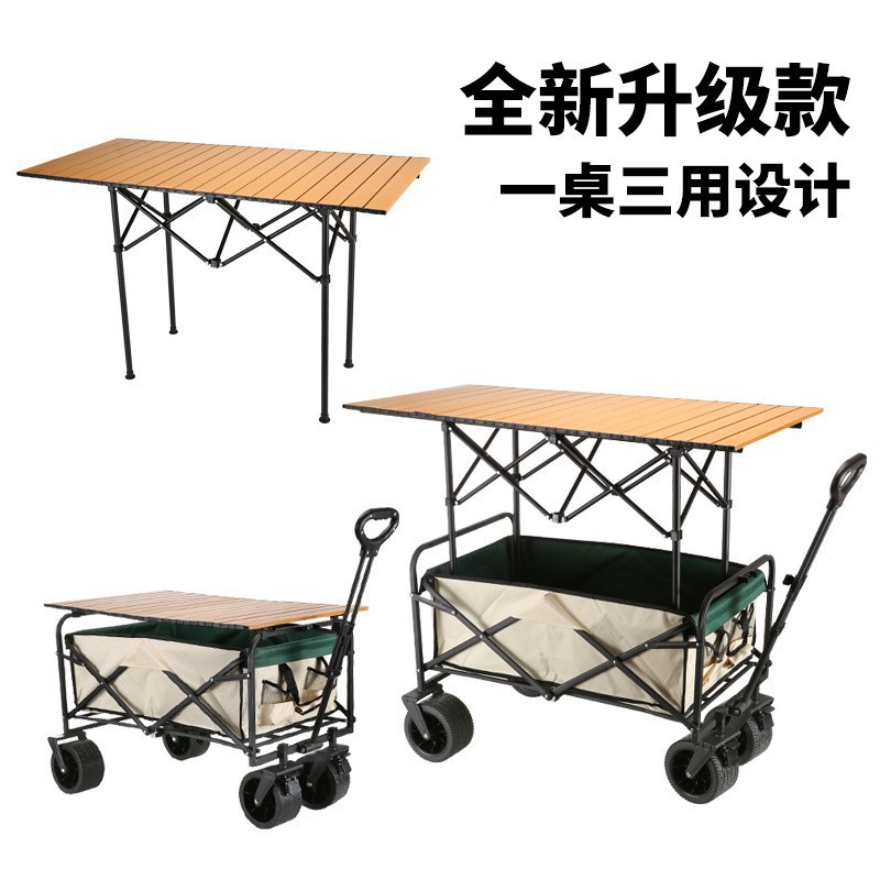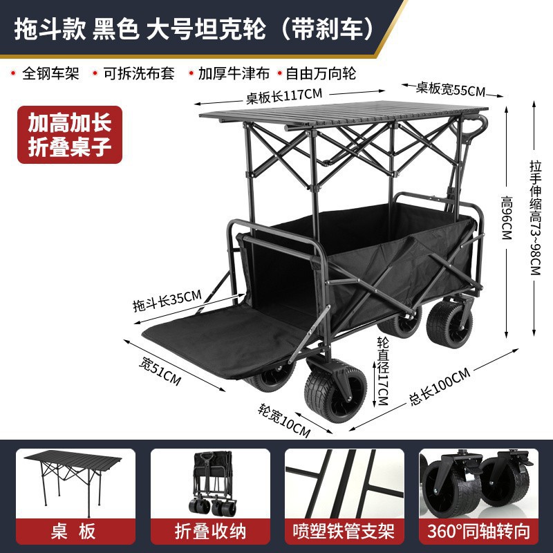 uvC拖鬥後繙露營地推車可折疊戶外手推野餐車小拉車升降桌擺攤小