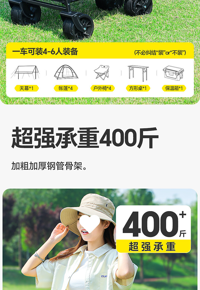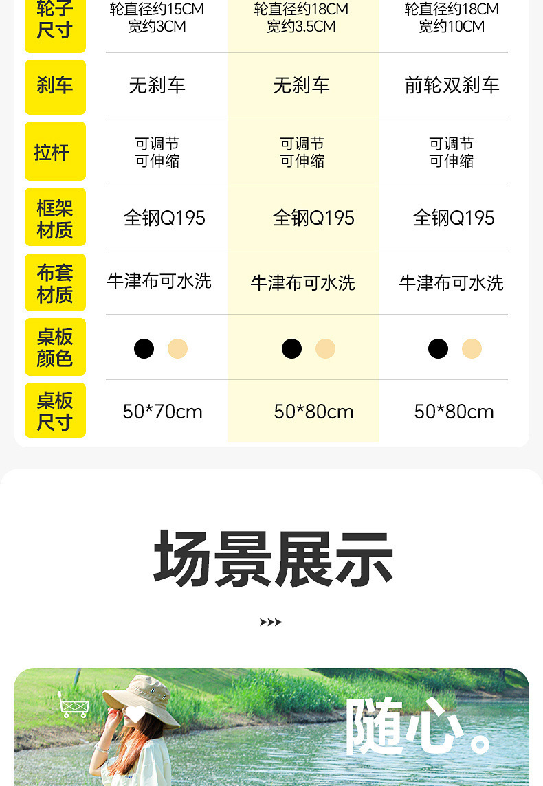 | 顔色 | 【承重約400斤】雙刹坦克輪/頂配款+桌板-卡其【升級加粗全鋼車架】 |