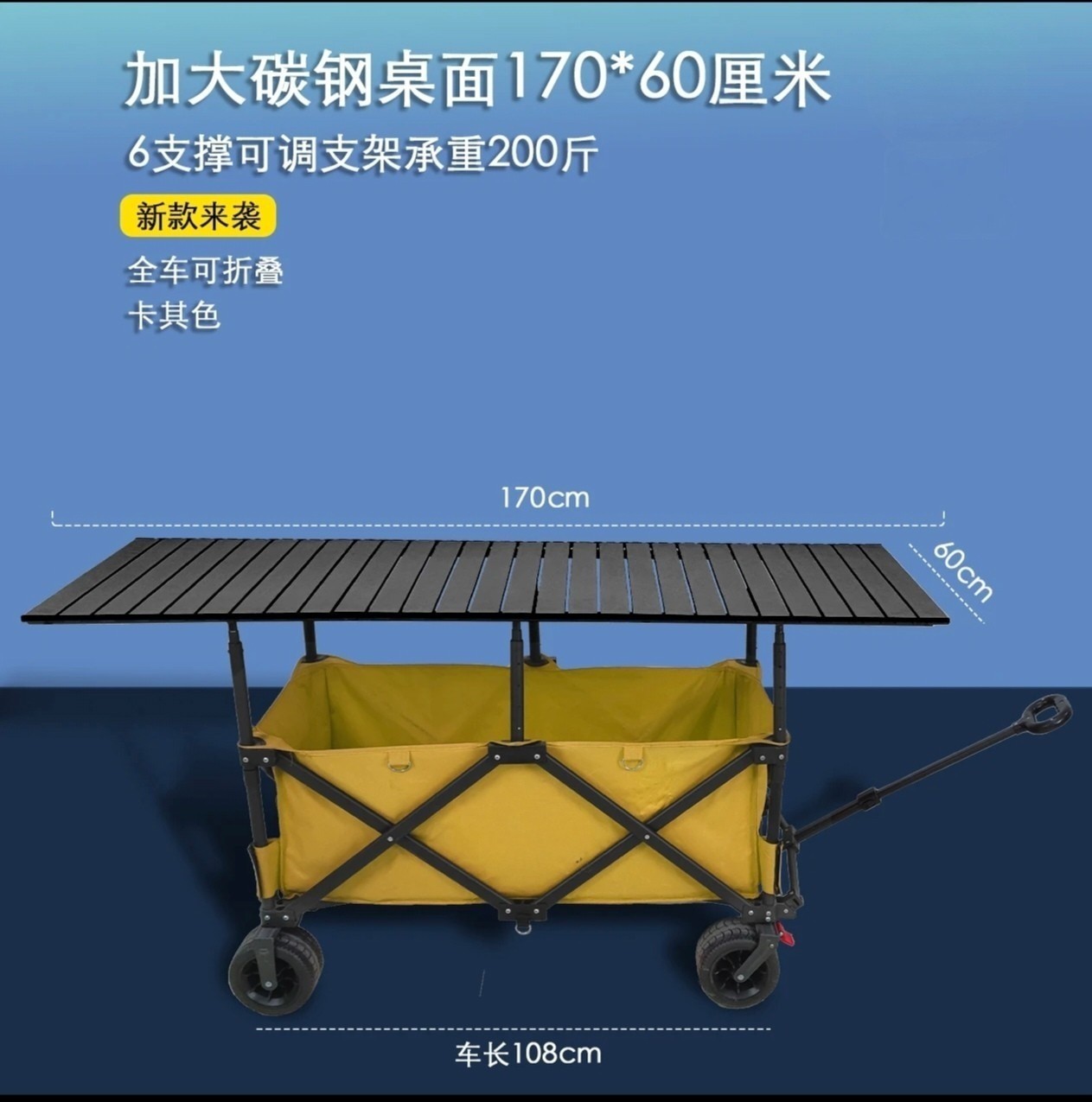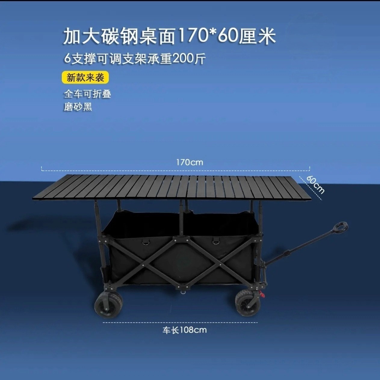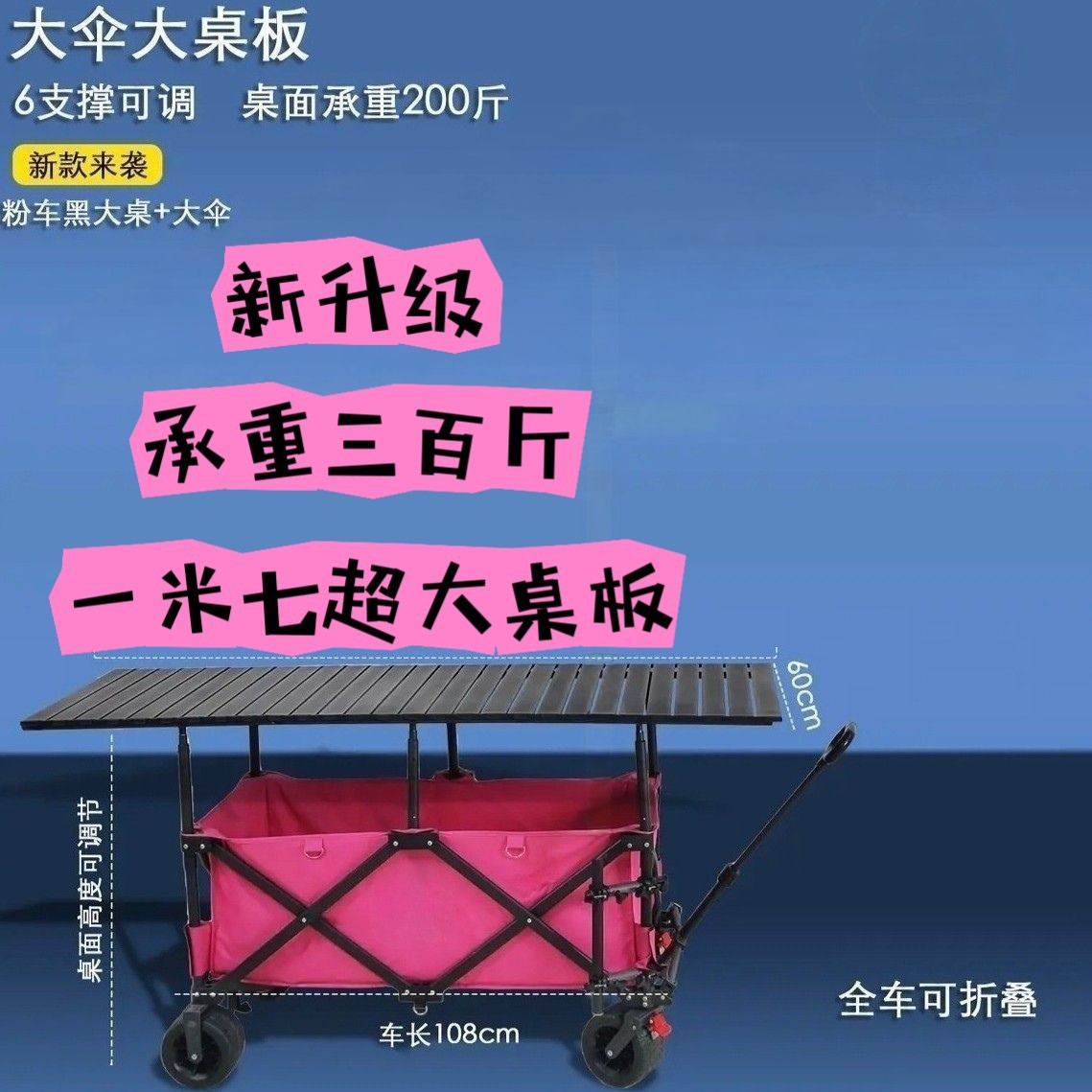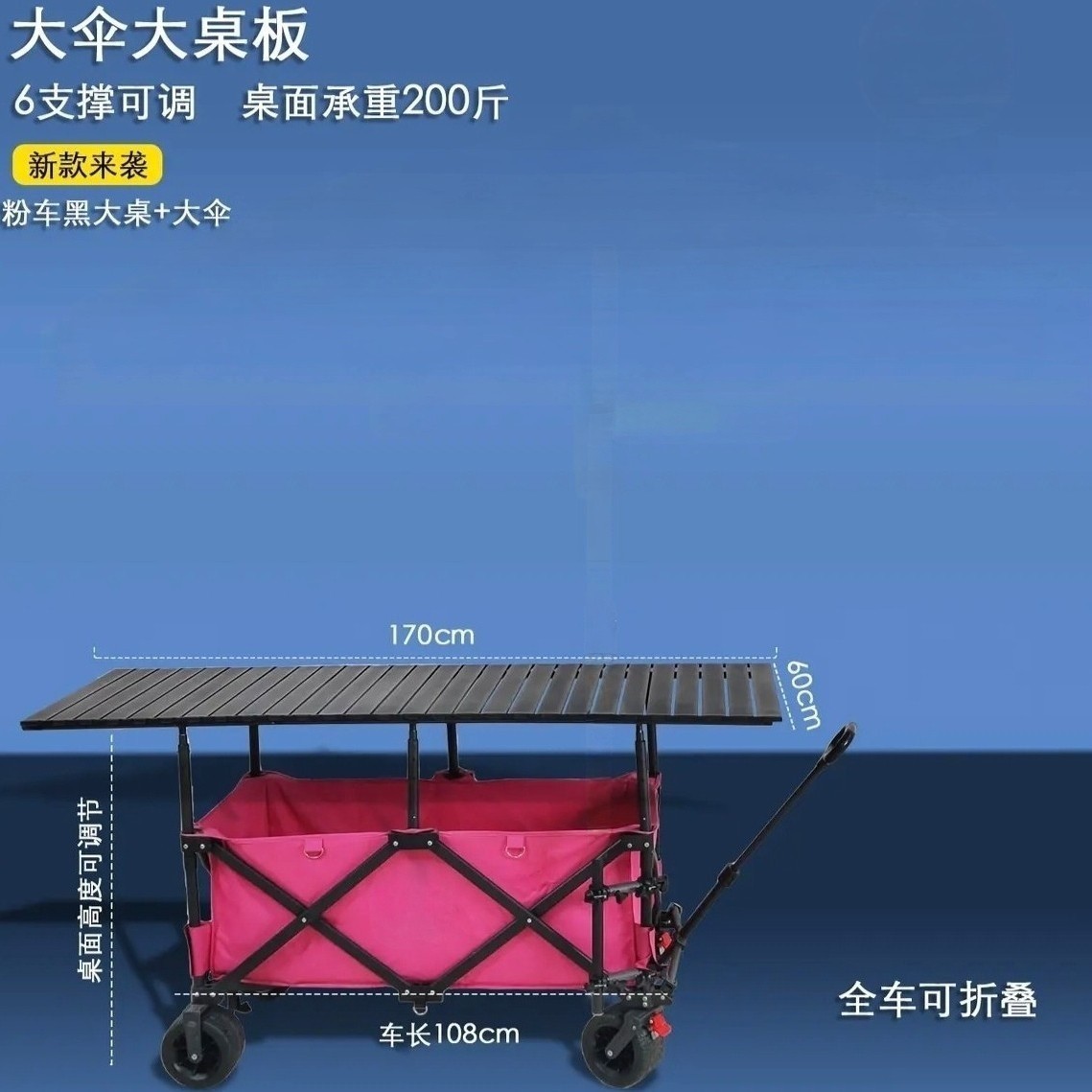 可升降擺攤車戶外折疊野營聚攏手拉車桌板夜市可攜式露營車擺攤大號