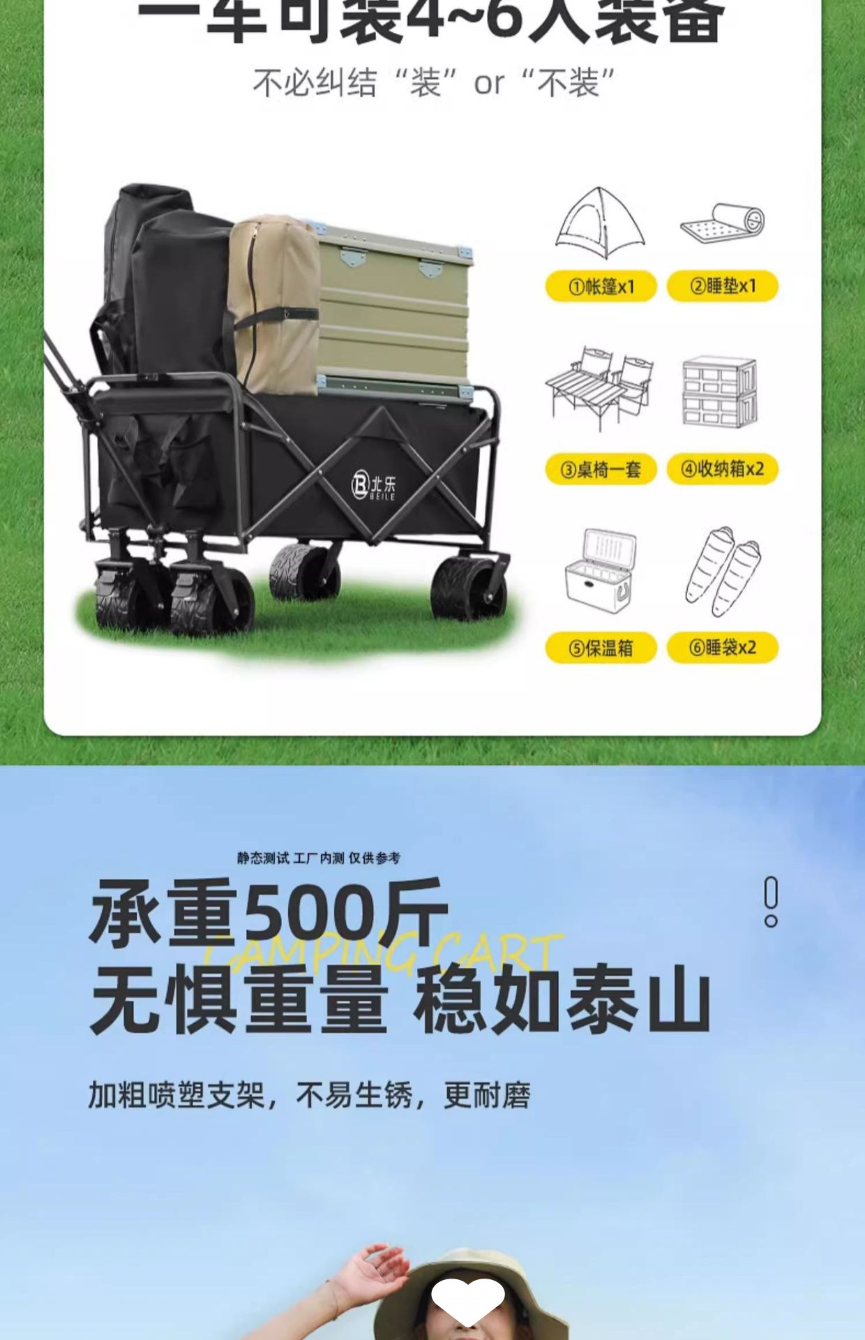 露營車戶外旅行營地車可折疊手推車野餐車野營拖車快遞擺攤小拉車