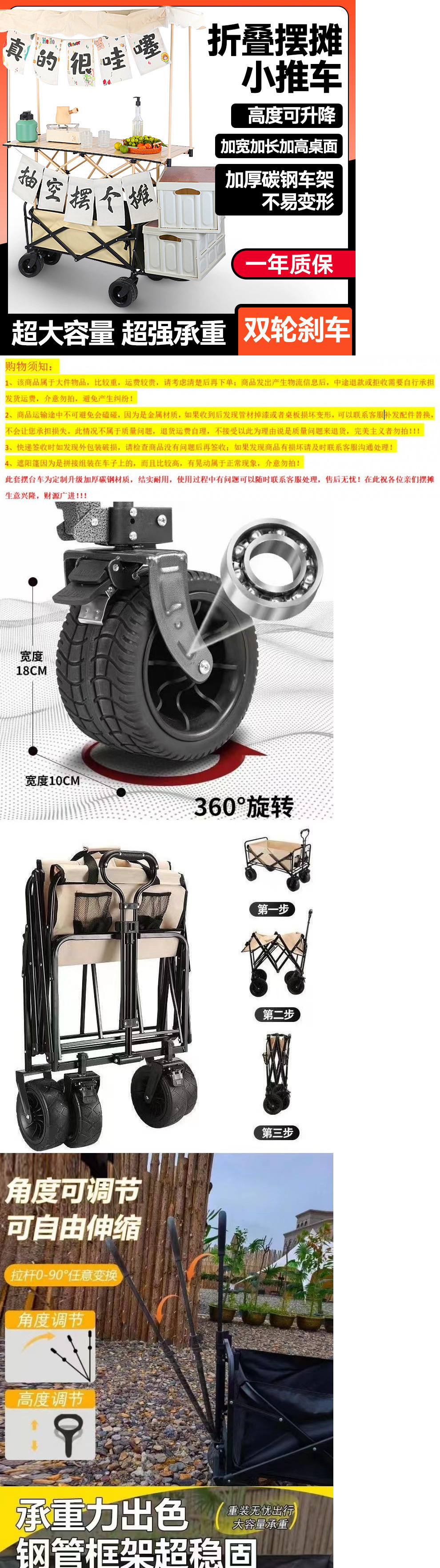 擺攤車移動升降露營推車營地拖車可折疊出攤野營野餐擺地攤小車