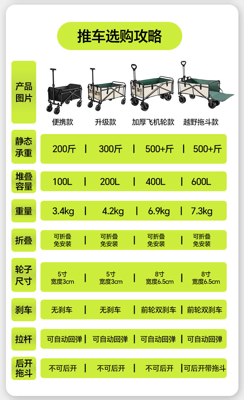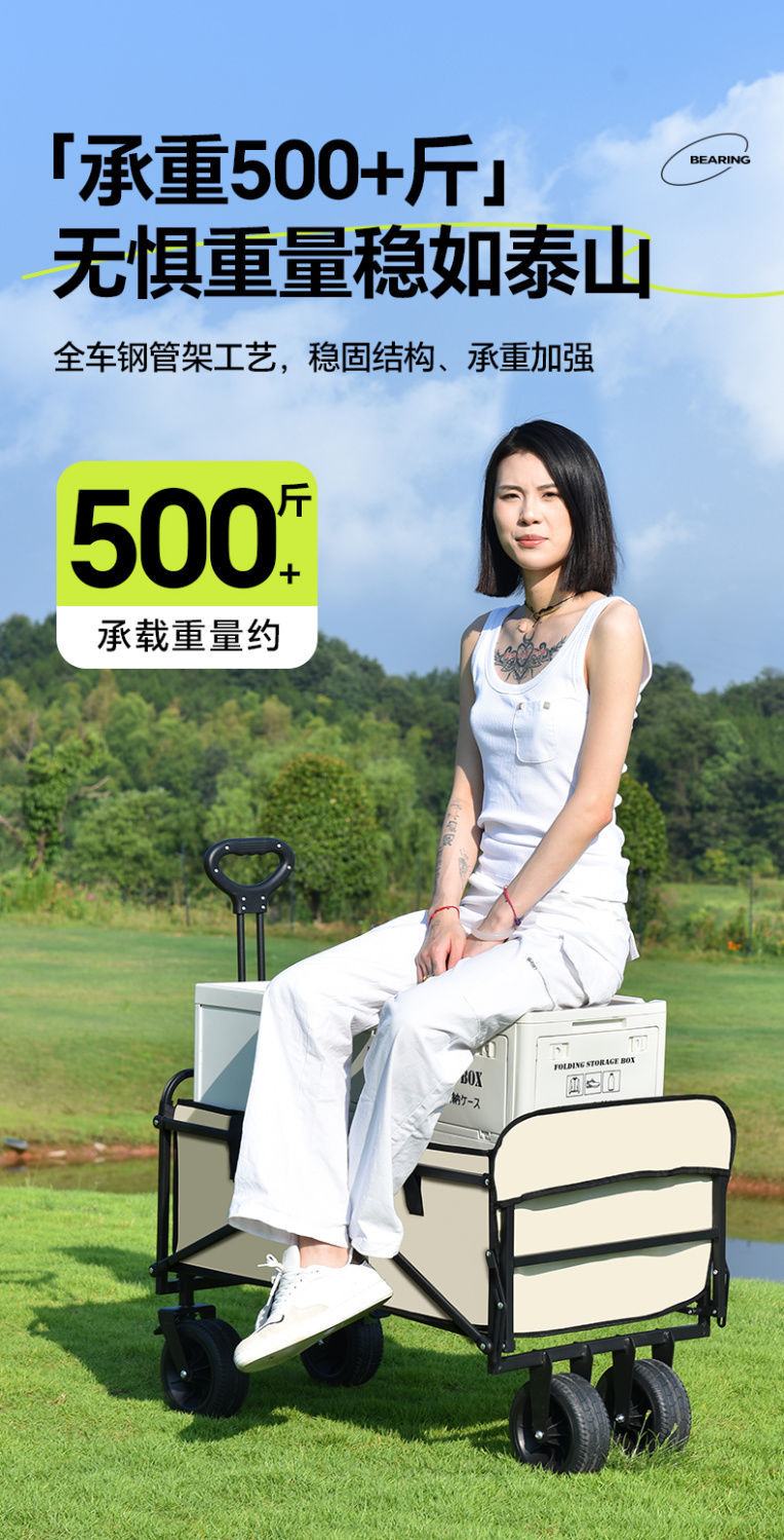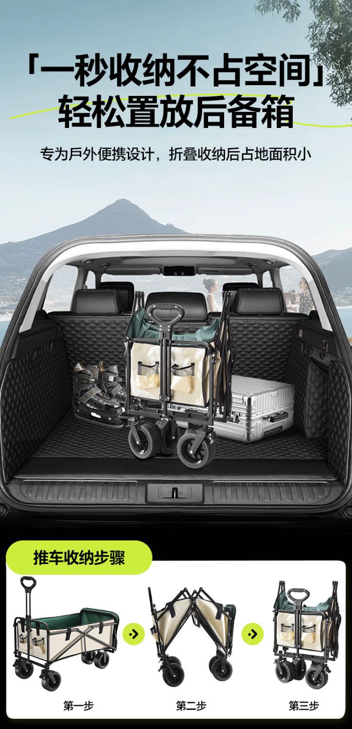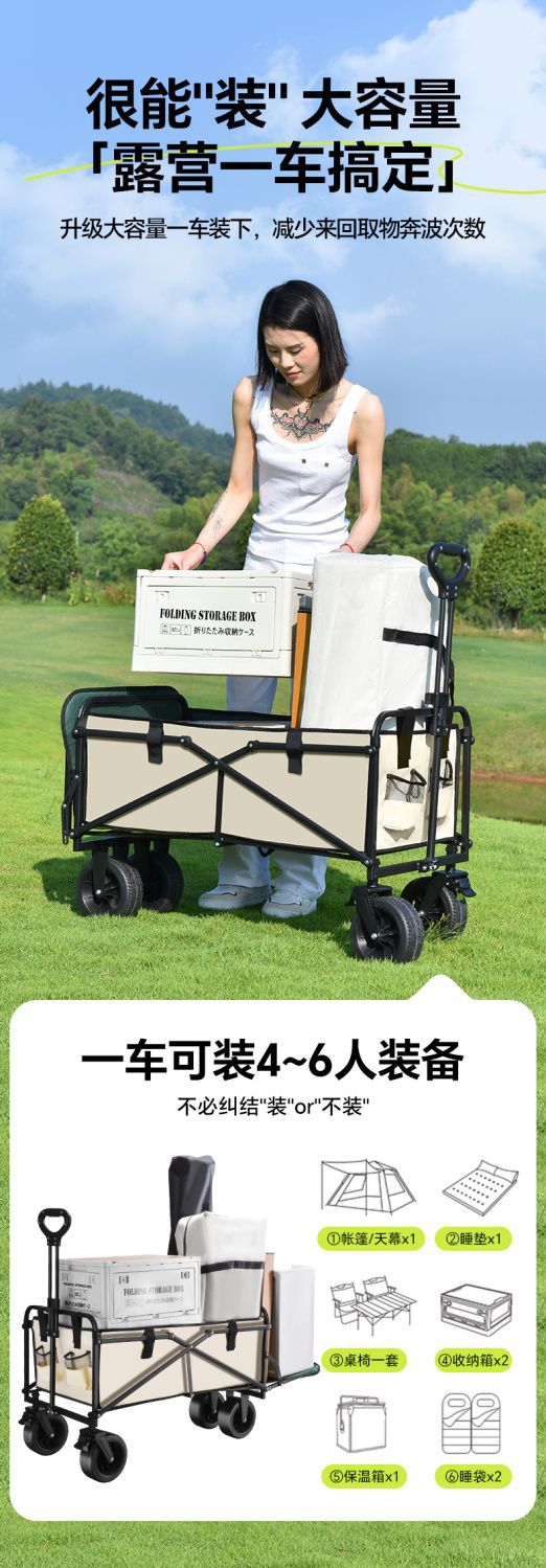 露營車手推車營地拖車戶外可折疊野營小拉車野餐車兒童可躺擺灘車