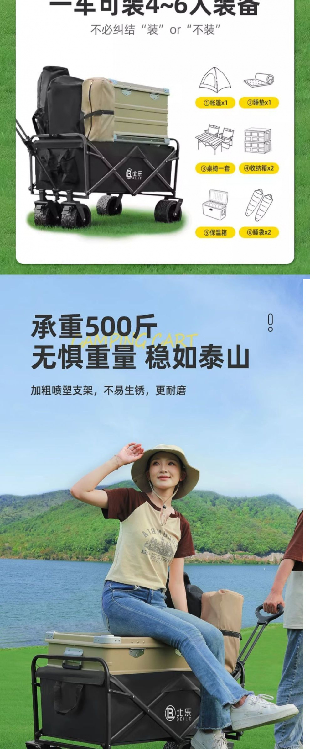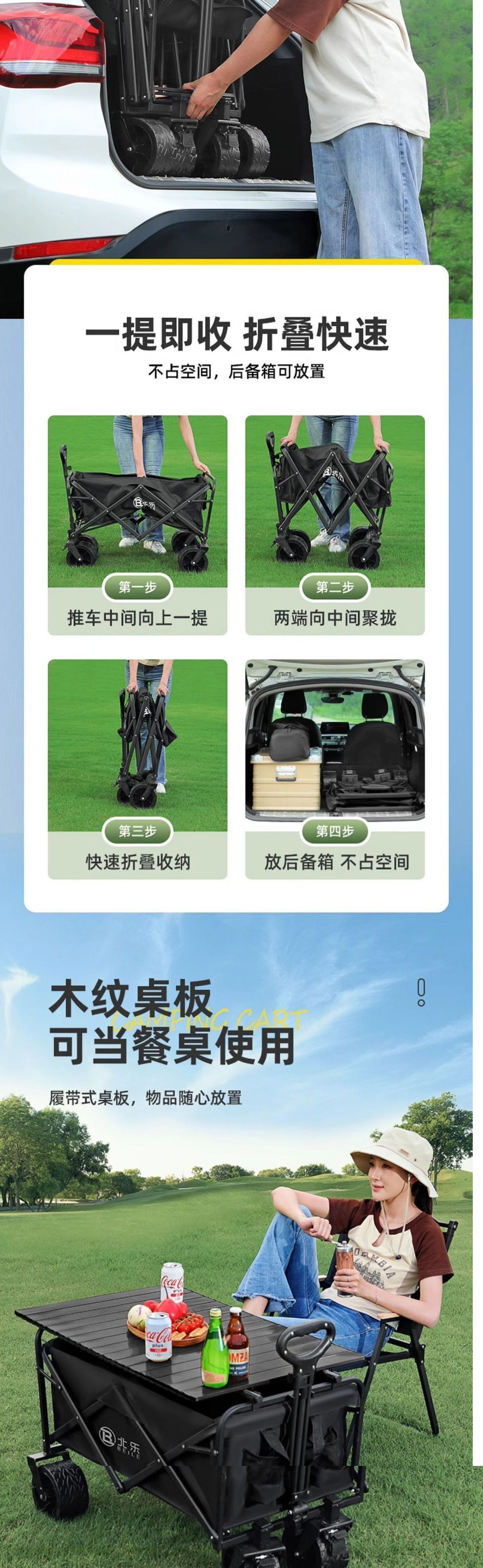 露營推車可折疊戶外營地車手推野餐車旅行可攜式車拖車拉桿車沙灘車