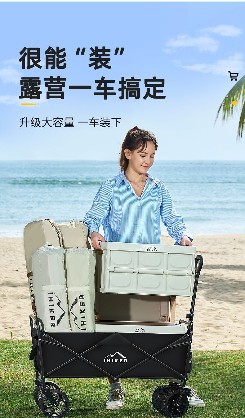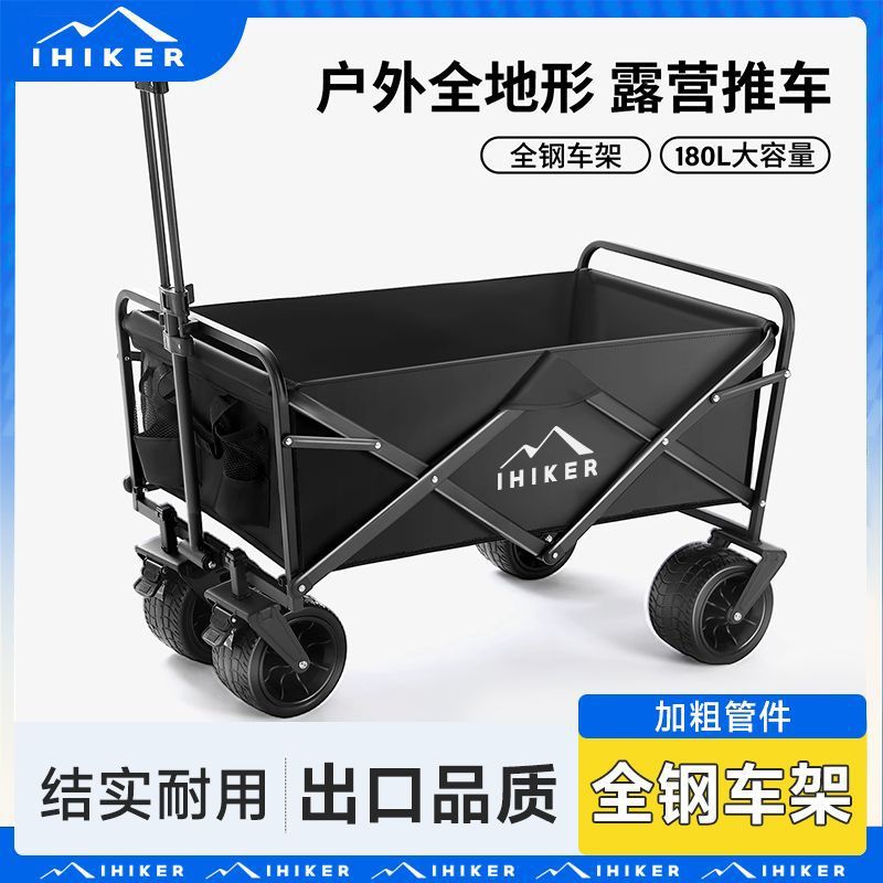 露營車推車戶外折疊手推快遞車兒童可躺野營野餐家用擺攤小推車