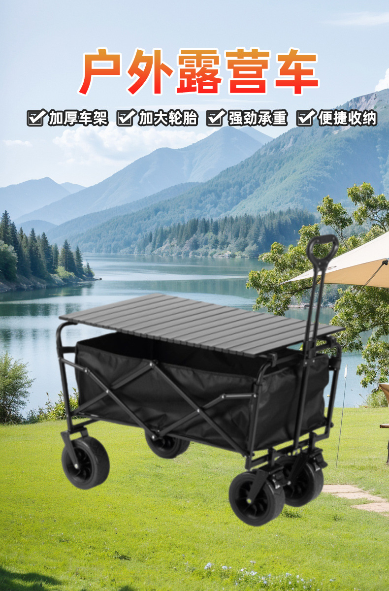 擺攤路邊攤可升降折疊萬能小推車戶外野餐車露營車家用購物手推車