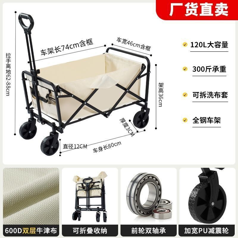 自營戶外擺攤可攜式野營小推車可折疊金屬手拉桿輕便露營新款
