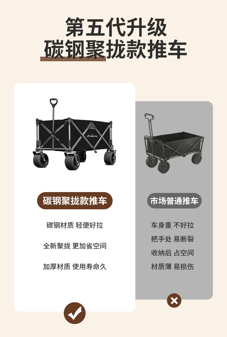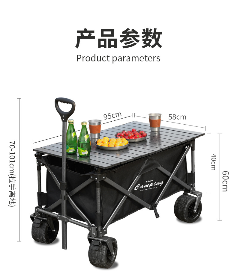 露營車戶外露營可折疊推車越野手推車金屬聚攏野營擺攤小推車